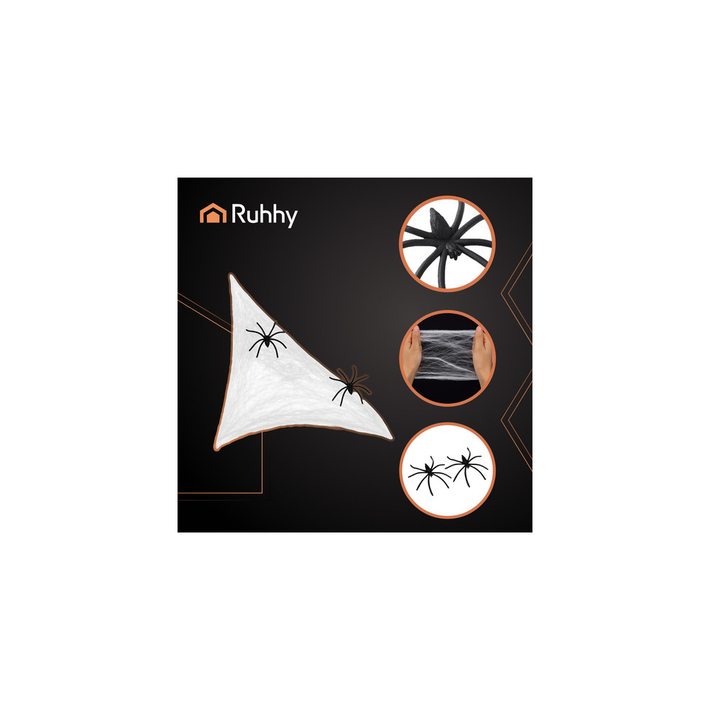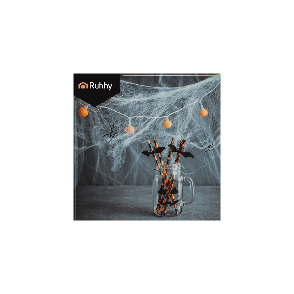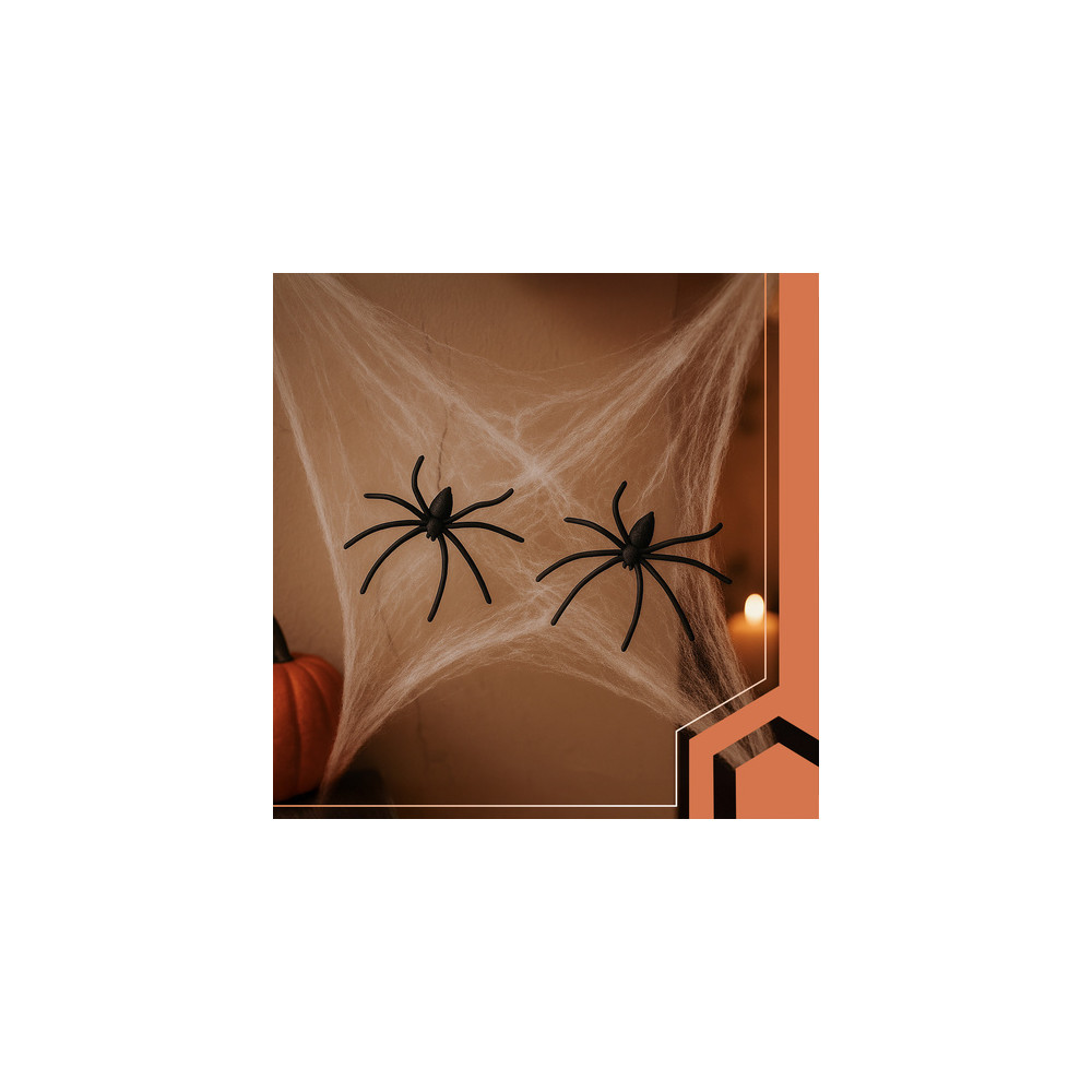 Dekorativní sada vhodná na Halloween. Obsahuje roztažitelnou pavučinu a 2 černé pavouky. Pavučina vypadá skvěle zavěšená nad dveřmi, na zábradlí, na stěně nebo okolo lampy. Ideální pro vytvoření hrůzostrašné atmosféry.