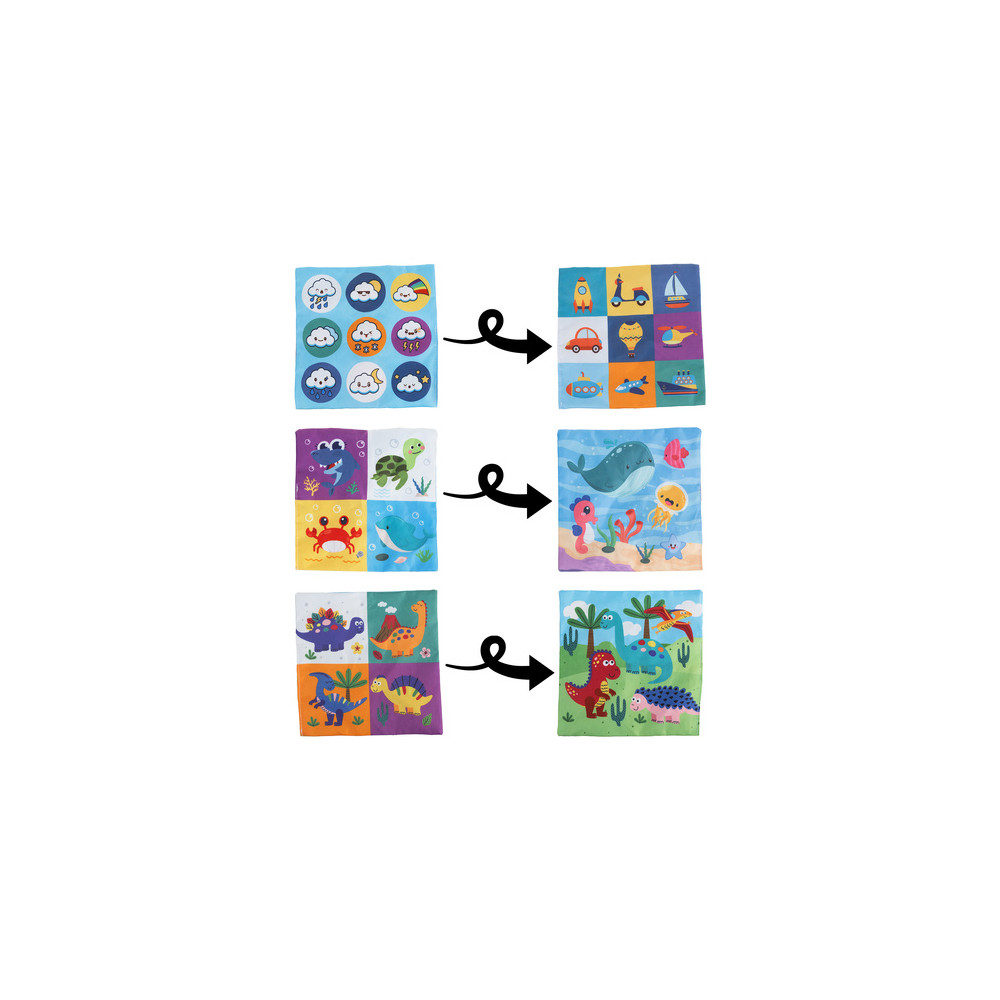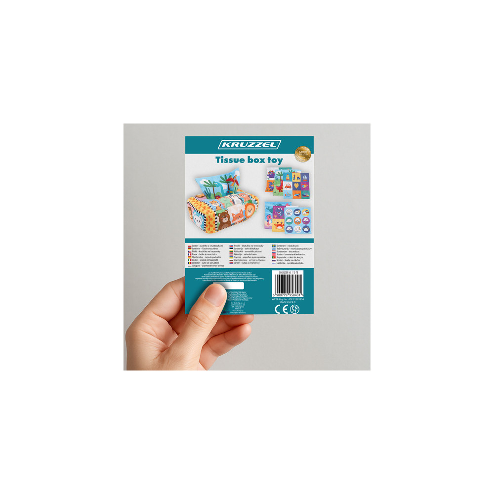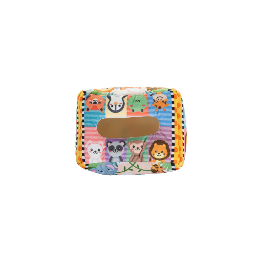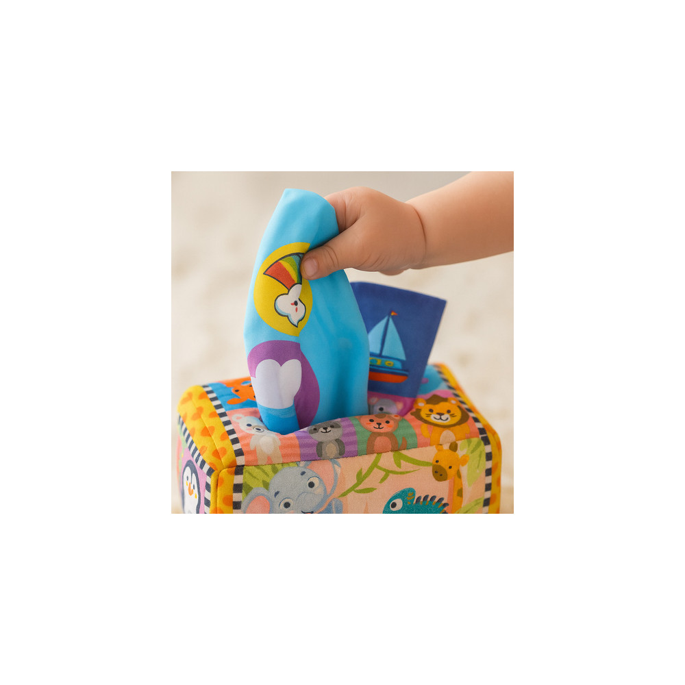 Senzorický box s plyšovými kapesníky pro podporu každodenního vývoje dítěte. Pomáhá rozvíjet manuální dovednosti, koordinaci ruka-oko a také učí rozpoznávat barvy, věci a zvířátka.