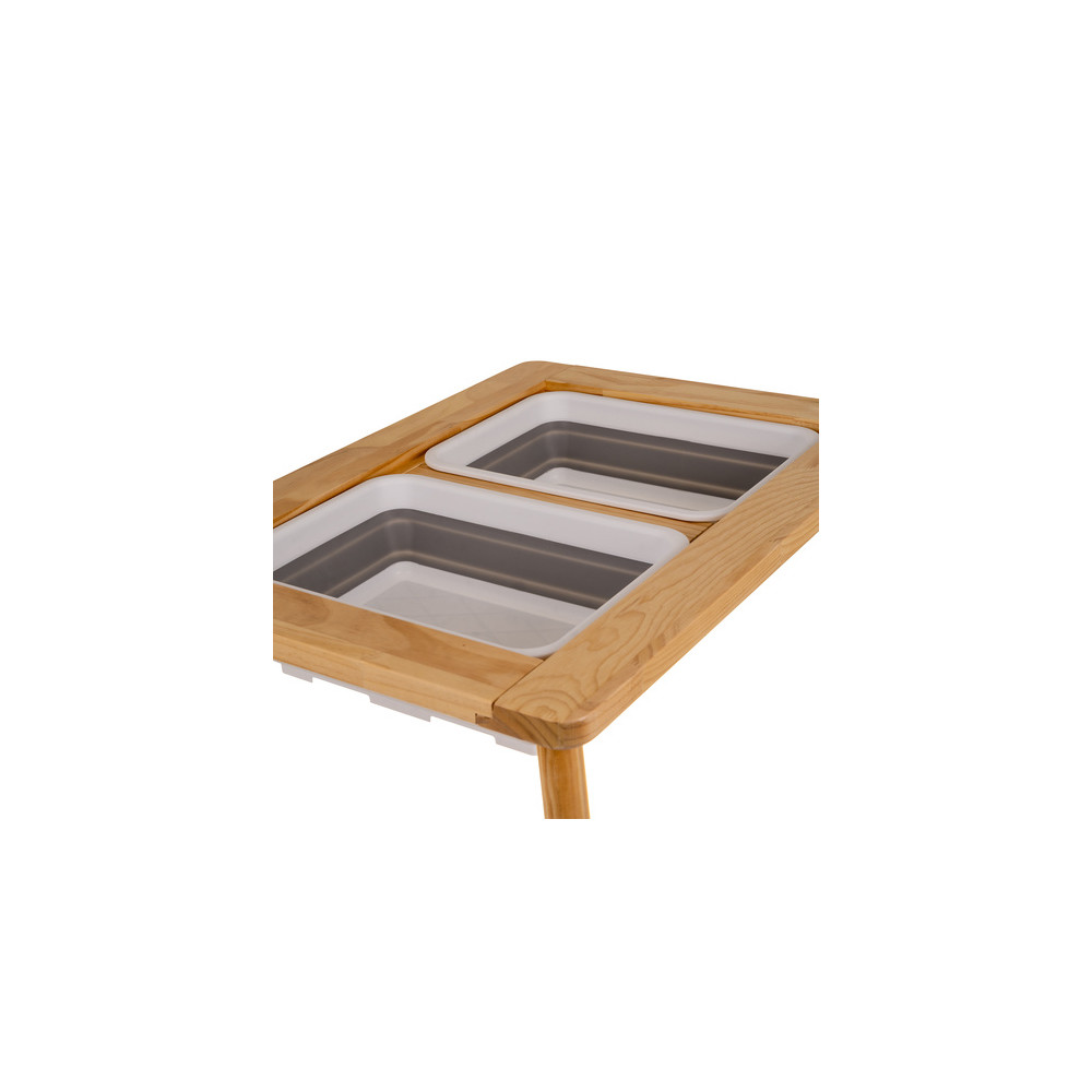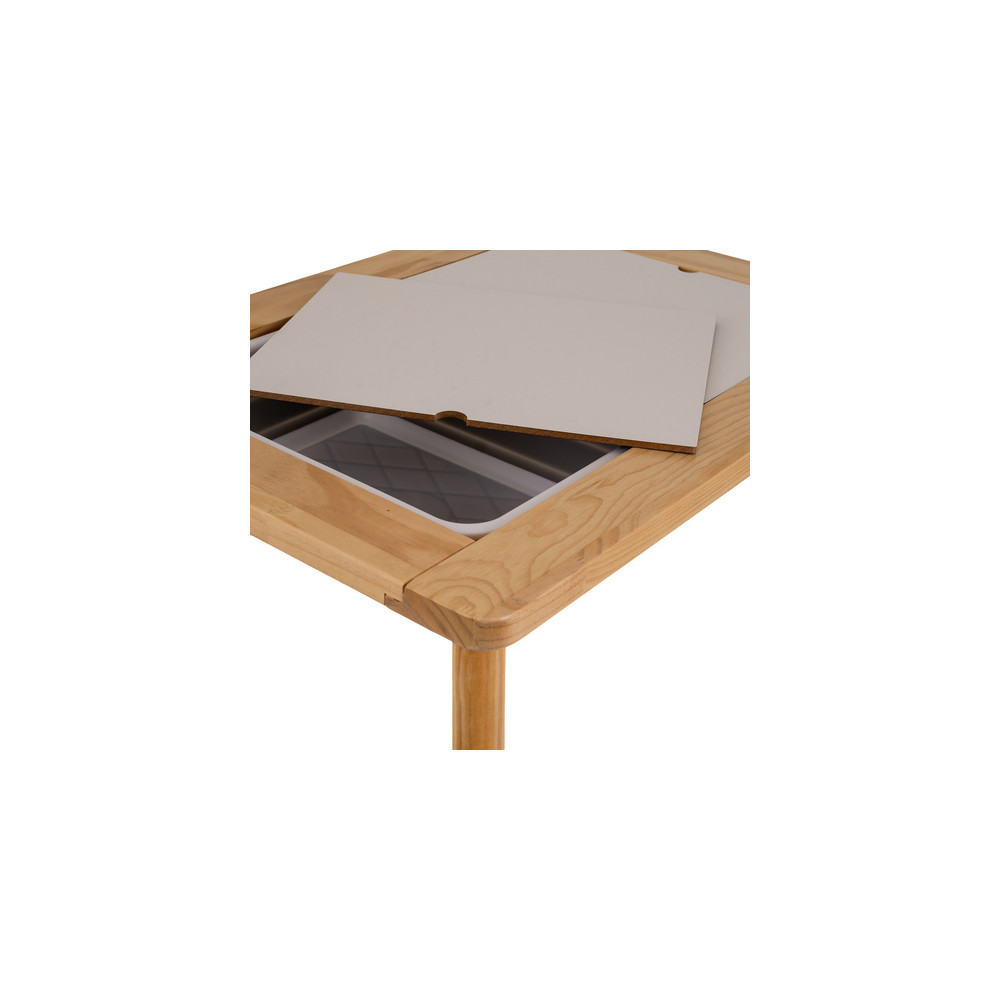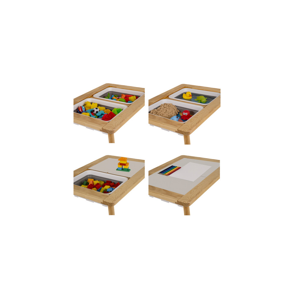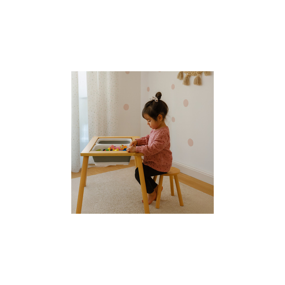 Senzorický stolek s židličkou pro děti má všestranné použití. Lze ho použít např. jako pískoviště nebo do něho uschovat hračky či výtvarné potřeby. Stůl inspirovaný metodou Montessori podporuje smysly, jemnou motoriku a kreativitu. Stůl se hodí do každého interiéru a je funkčním i estetickým prvkem. Optimální výška stolu je ideální pro děti starší 3 let a zaručuje pohodlí a komfort.