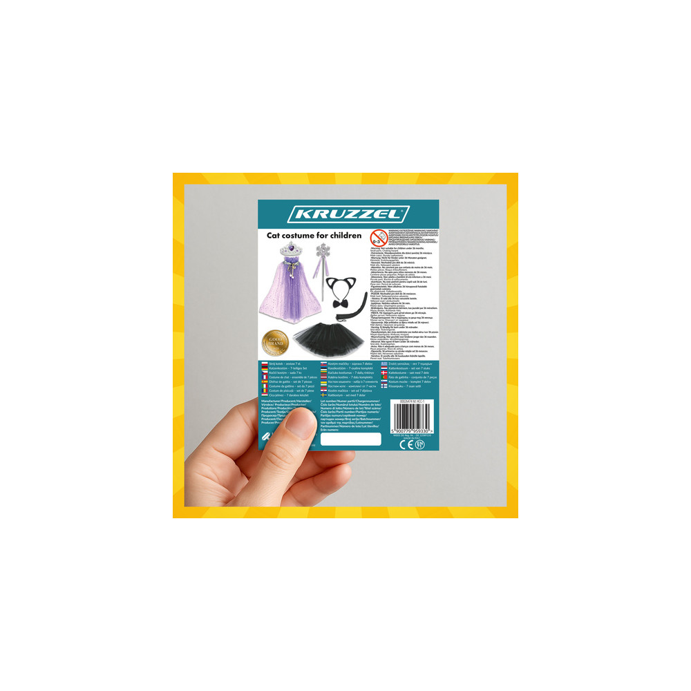 Sada obsahuje 7 kusů: sukýnku, plášť, korunku, hůlku, čelenku, ocásek a motýlka. Kostým lze vyprat v pračce s jemným programem na 30 °C.