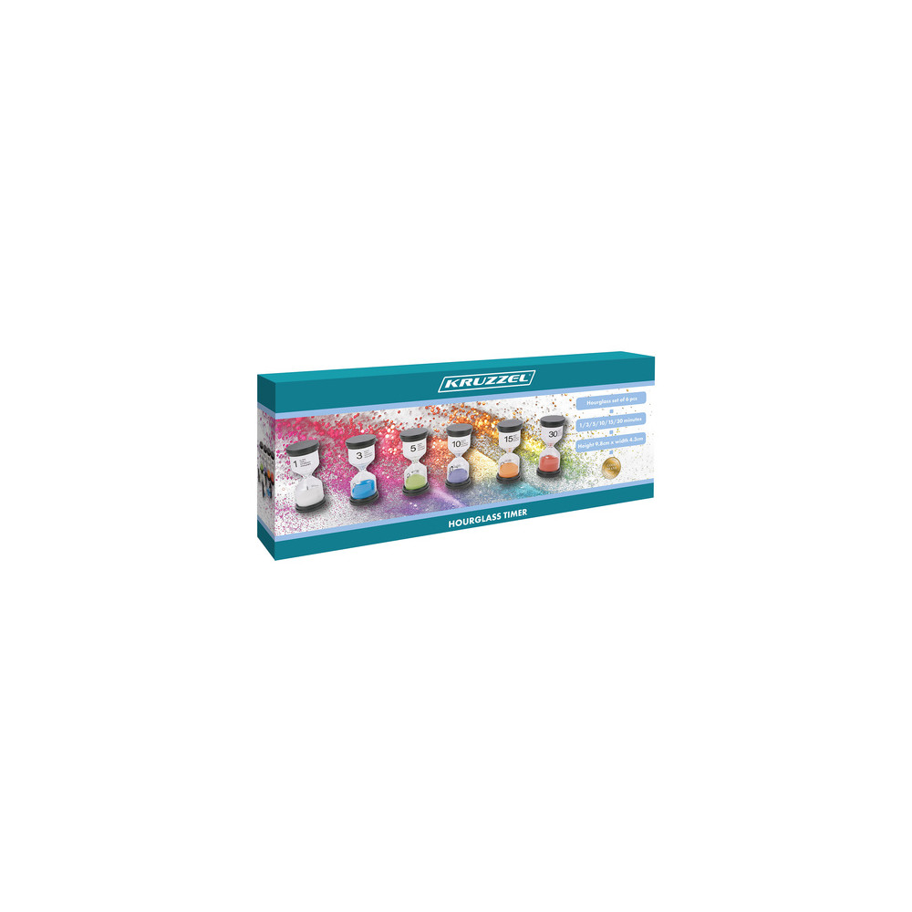 Sada 6 různých přesýpacích hodin pro měření času. Praktická pomůcka pro učení dochvilnosti a soustředění. Vhodné třeba pro měření času u stolních her, u čištění zubů nebo u učení do školy.