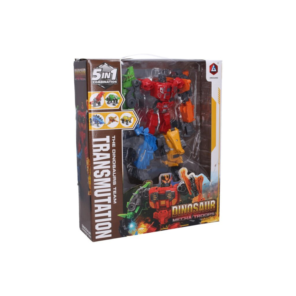 Pestrobarevný dinosauří robot, který se skládá z dalších pěti menších robotů a poté se transformuje na dinosaury. Návod na složení je uveden na zadní části obalu.