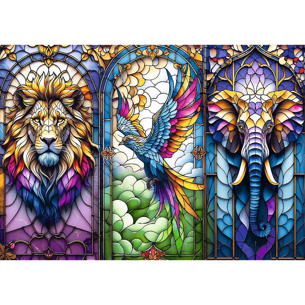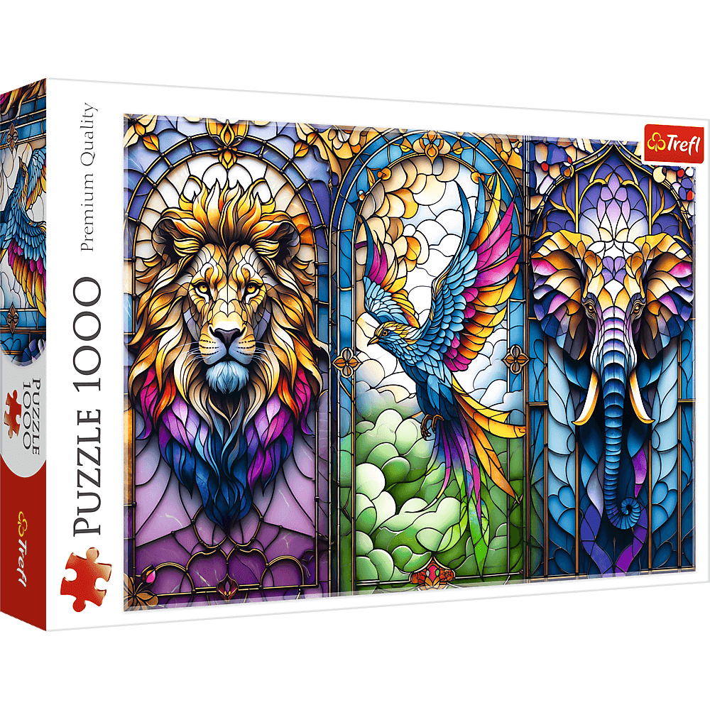 Puzzle od značky Trefl s barevným motivem zvířat.