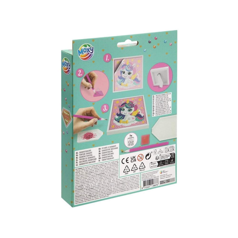 Kreativní sada diamantového malování s motivem jednorožce je ideální zábavou pro děti i dospělé. Obrázek je potištěný voděodolným podkladem se samolepicí vrstvou, na kterou se pomocí aplikátoru snadno nanášejí malé třpytivé kamínky. Výsledkem je zářivý obrázek, který si můžete vystavit nebo darovat.