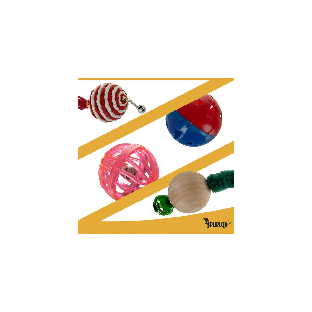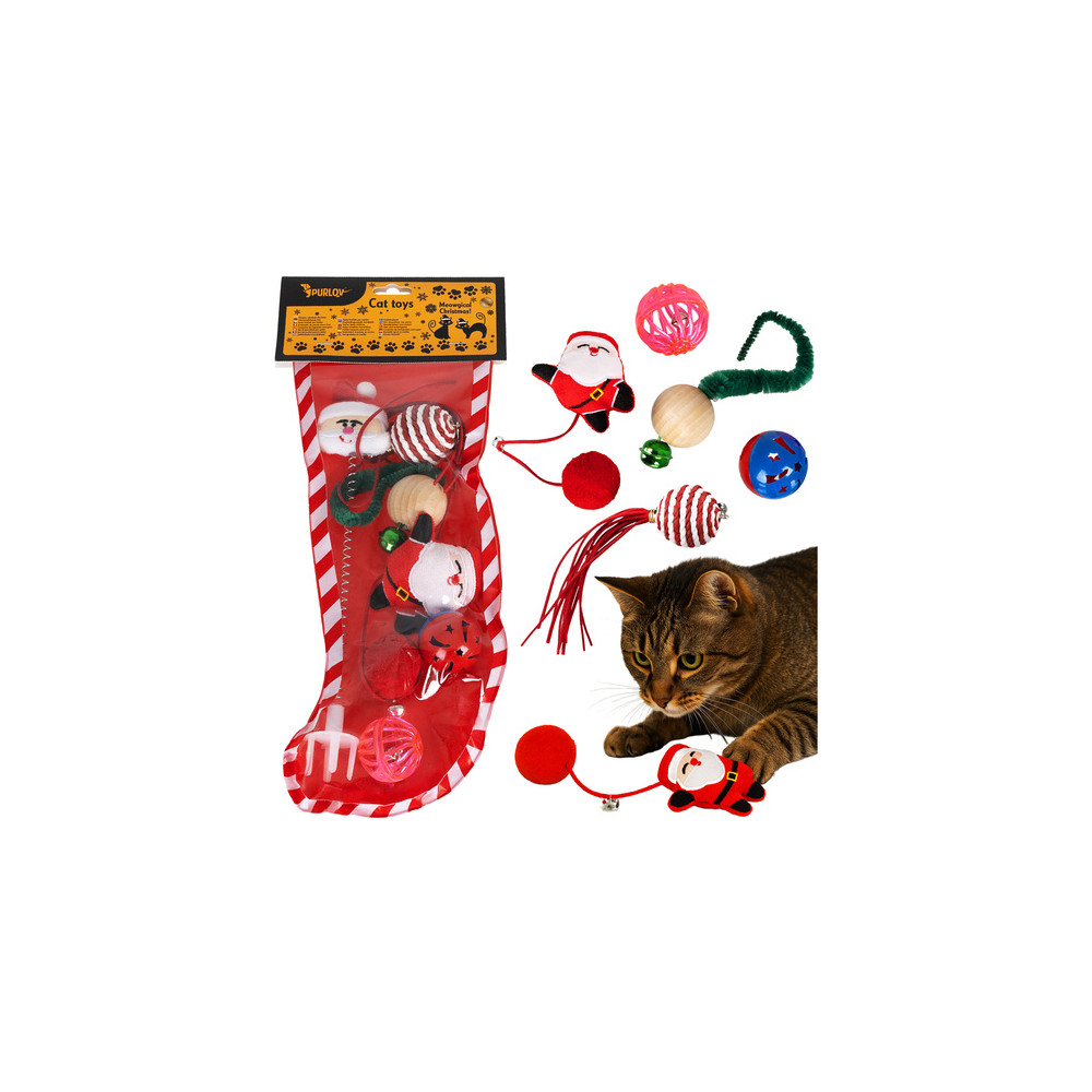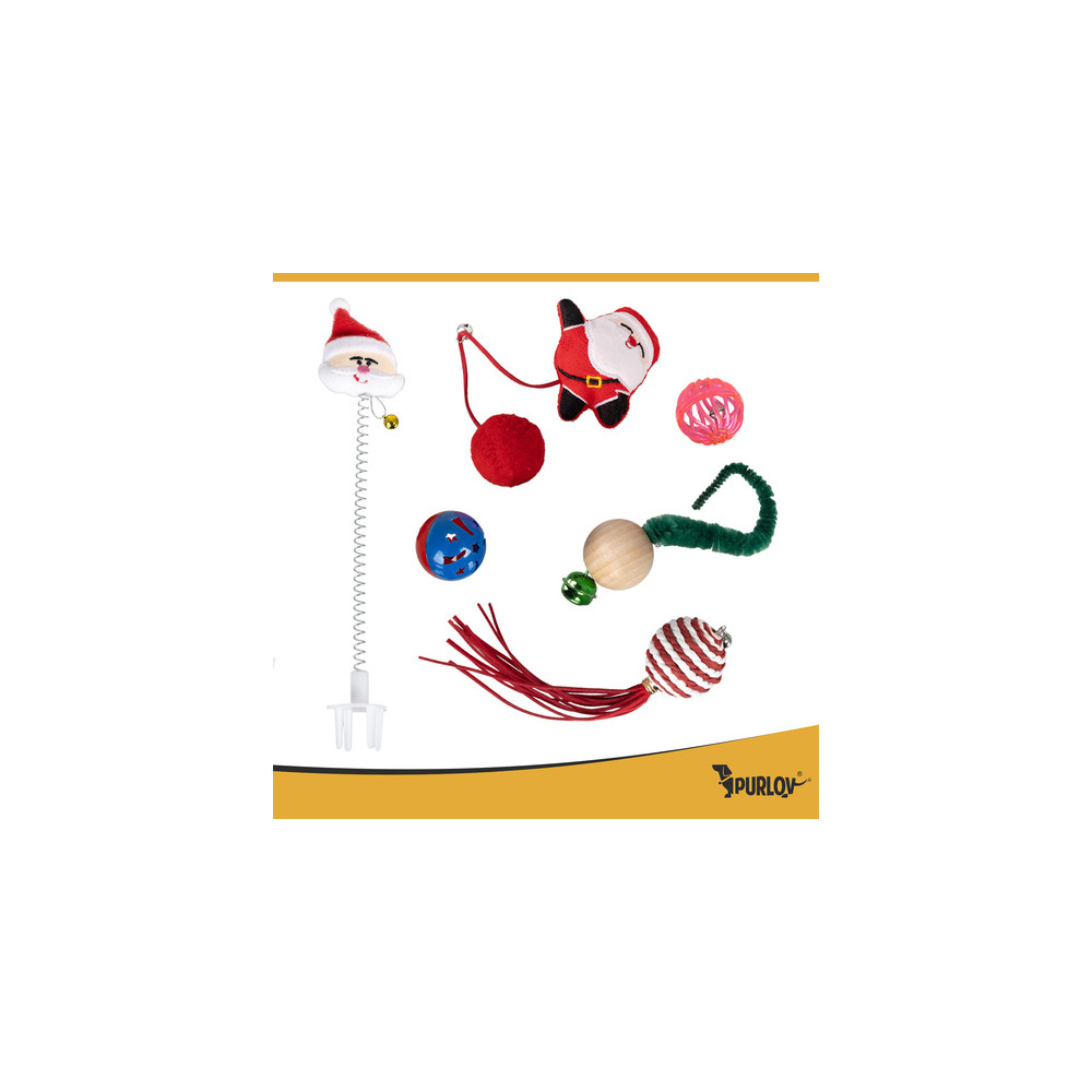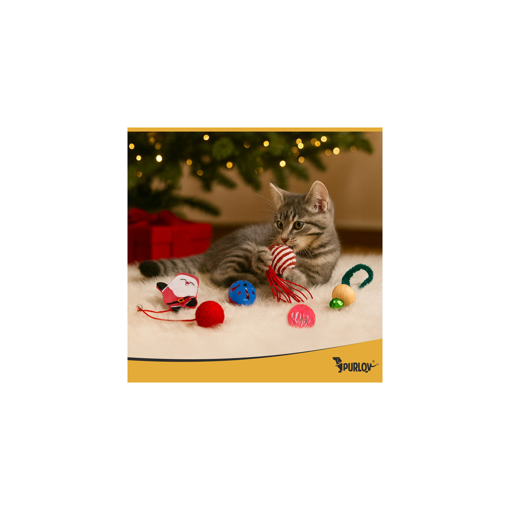 Sada vánočních hraček pro kočky obsahující 6 míčků s pružinami nebo bambulkou. Jsou přizpůsobené různým formám hry a díky rozmanitosti tvarů zapojuje kočku do různých aktivit od kousání až po lov.