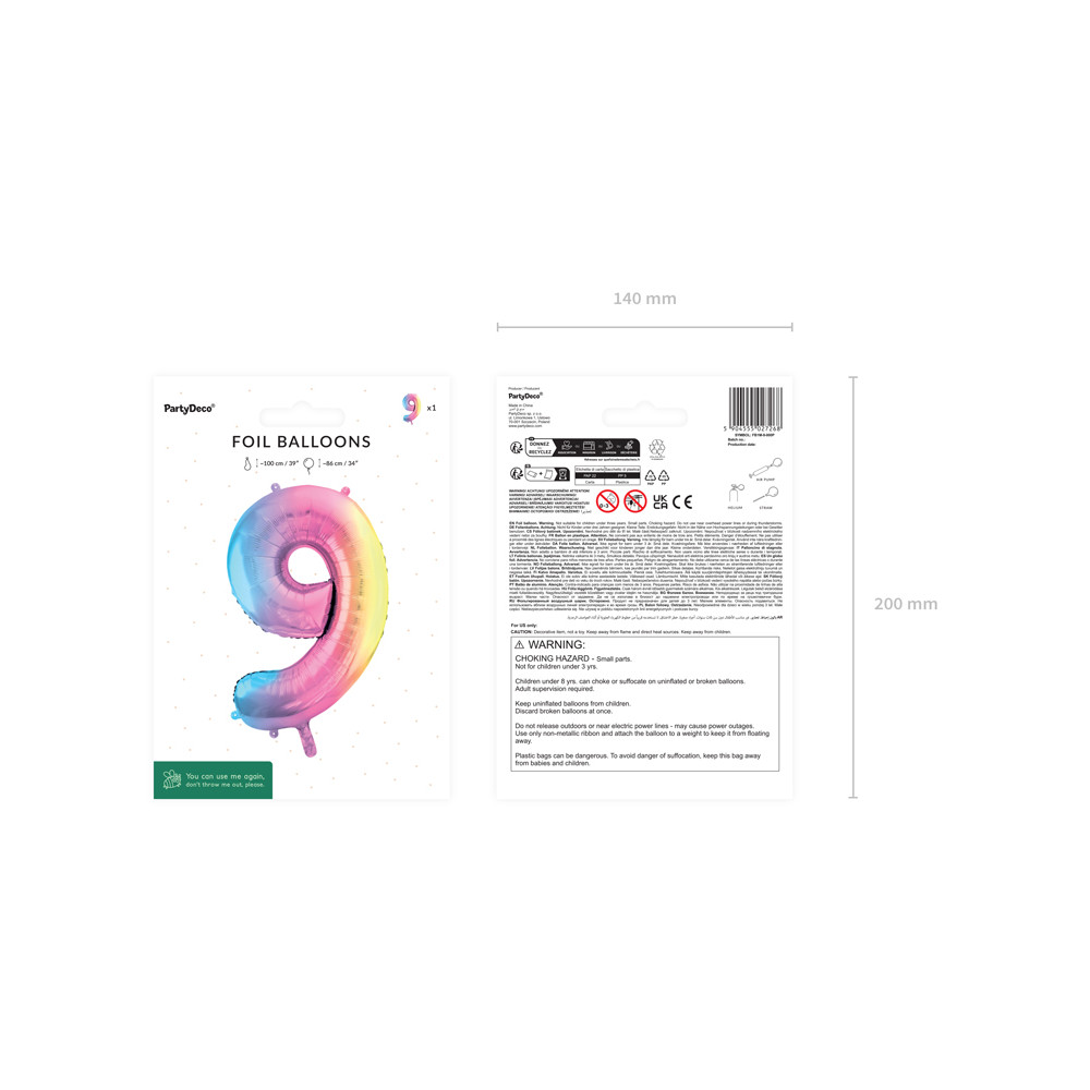 Fóliový nafukovací balónek v krásných duhových pastelových barvách ve tvaru číslice.