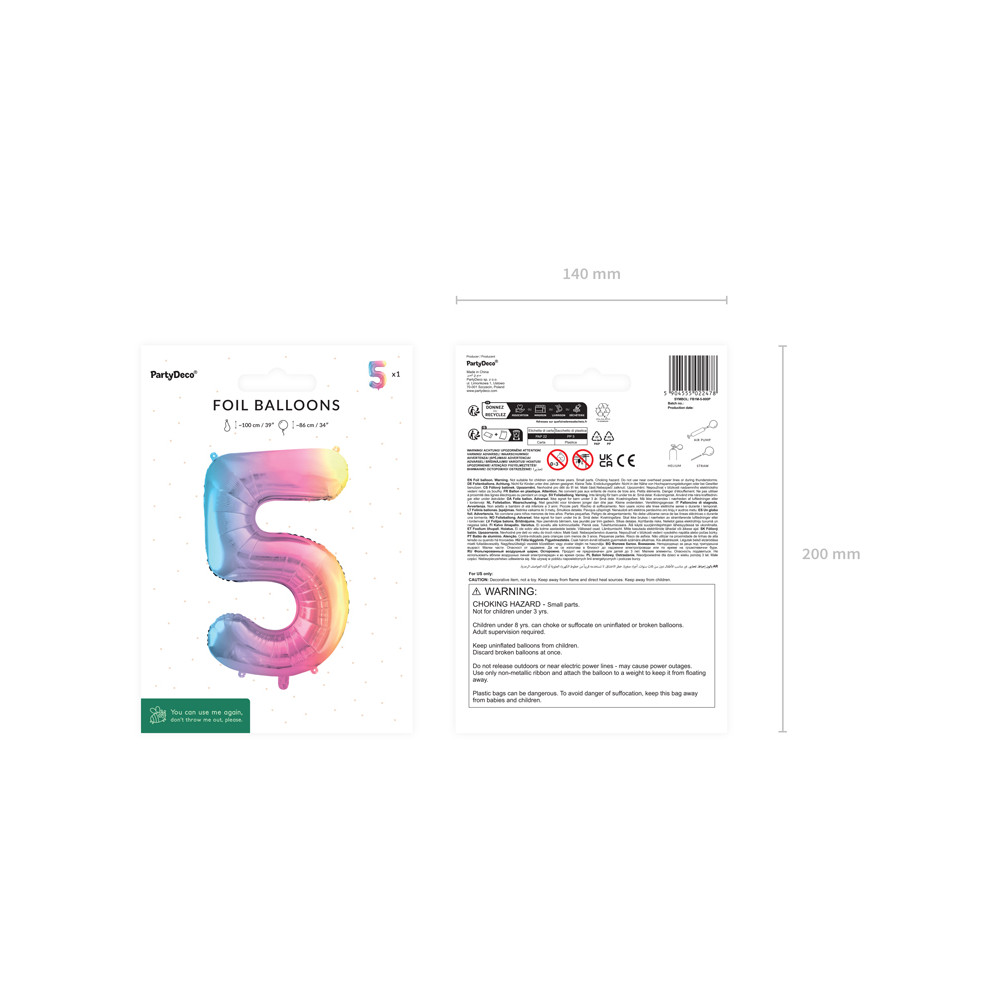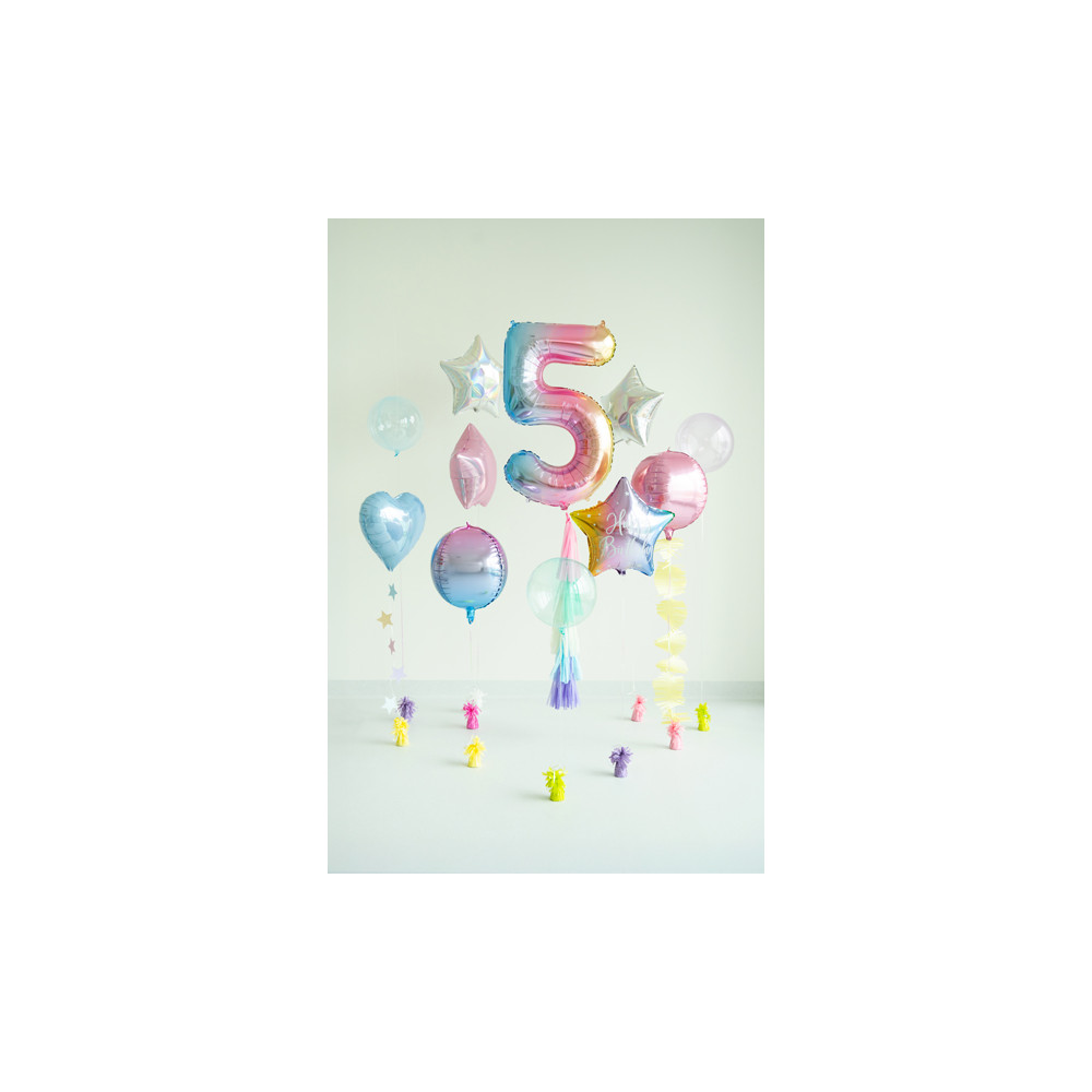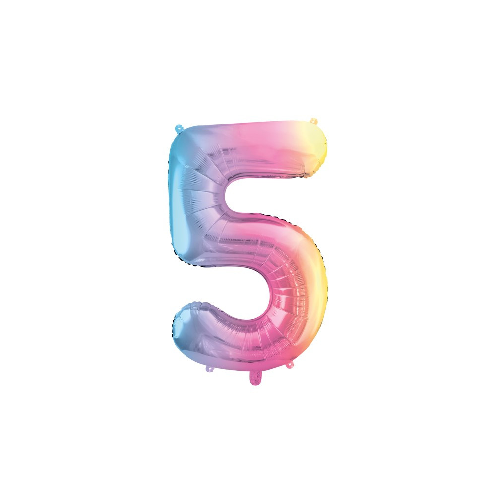 Fóliový nafukovací balónek v krásných duhových pastelových barvách ve tvaru číslice.