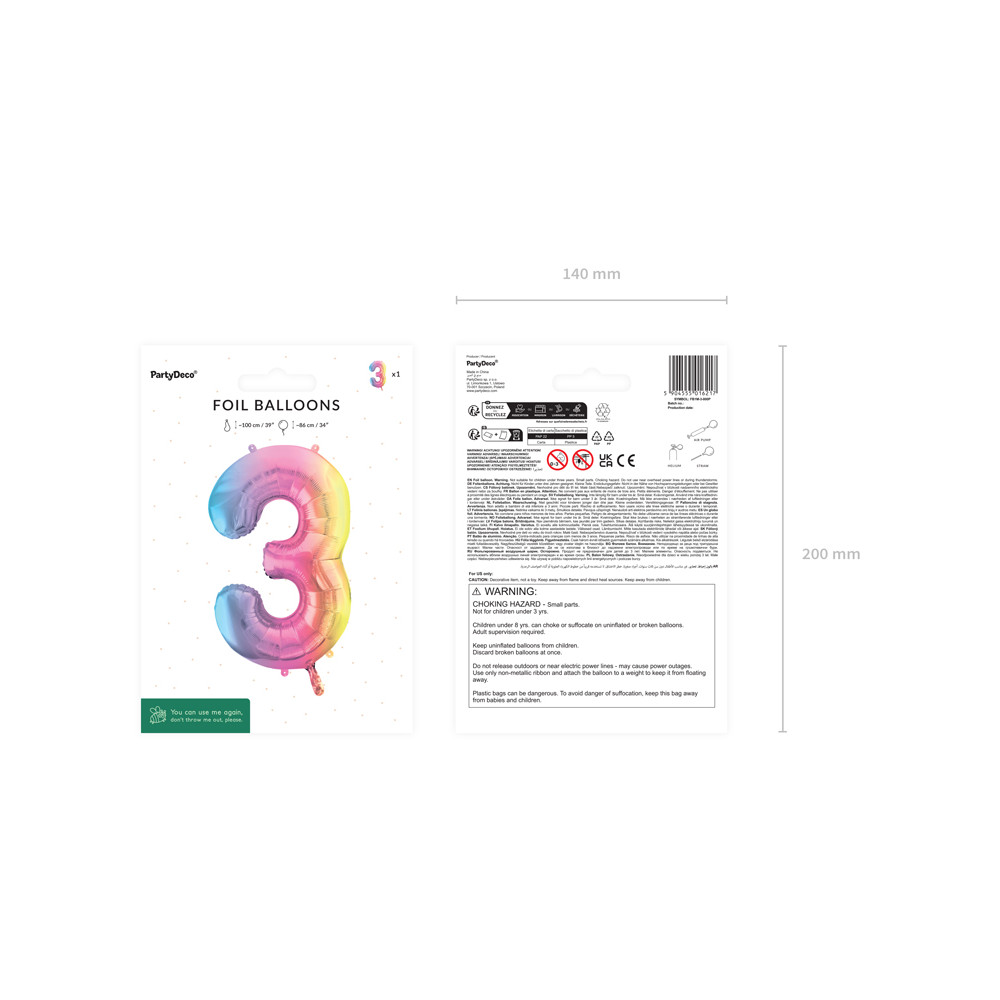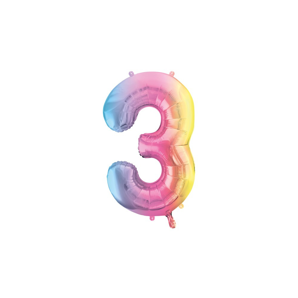 Fóliový nafukovací balónek v krásných duhových pastelových barvách ve tvaru číslice.