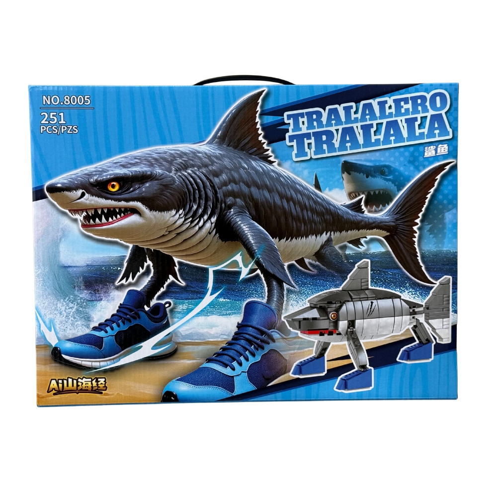 Stavebnice s motivem postavičky Tralalero Tralala, která vznikla jako součást Italian Brainrot. Podporuje logické myšlení a rozvíjí prostorovou představivost a manuální zručnost.