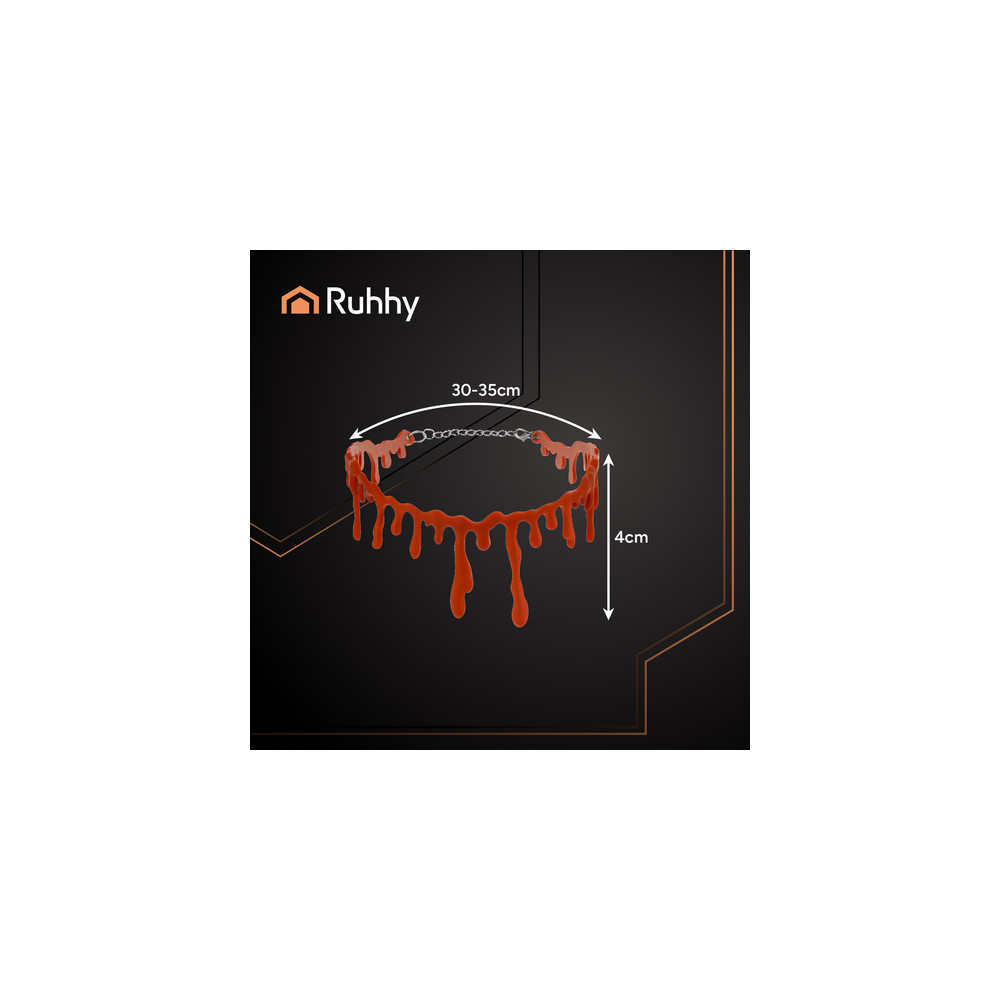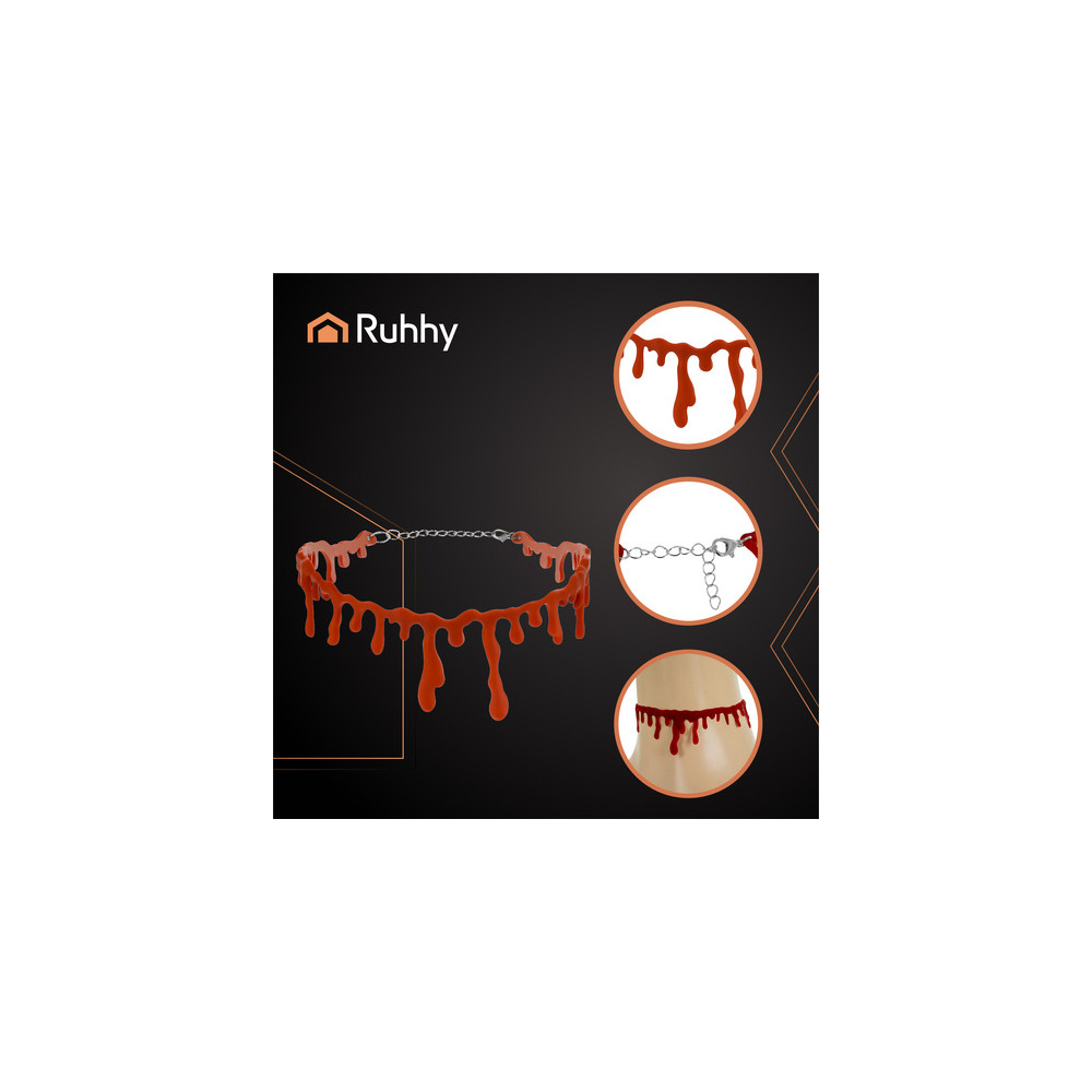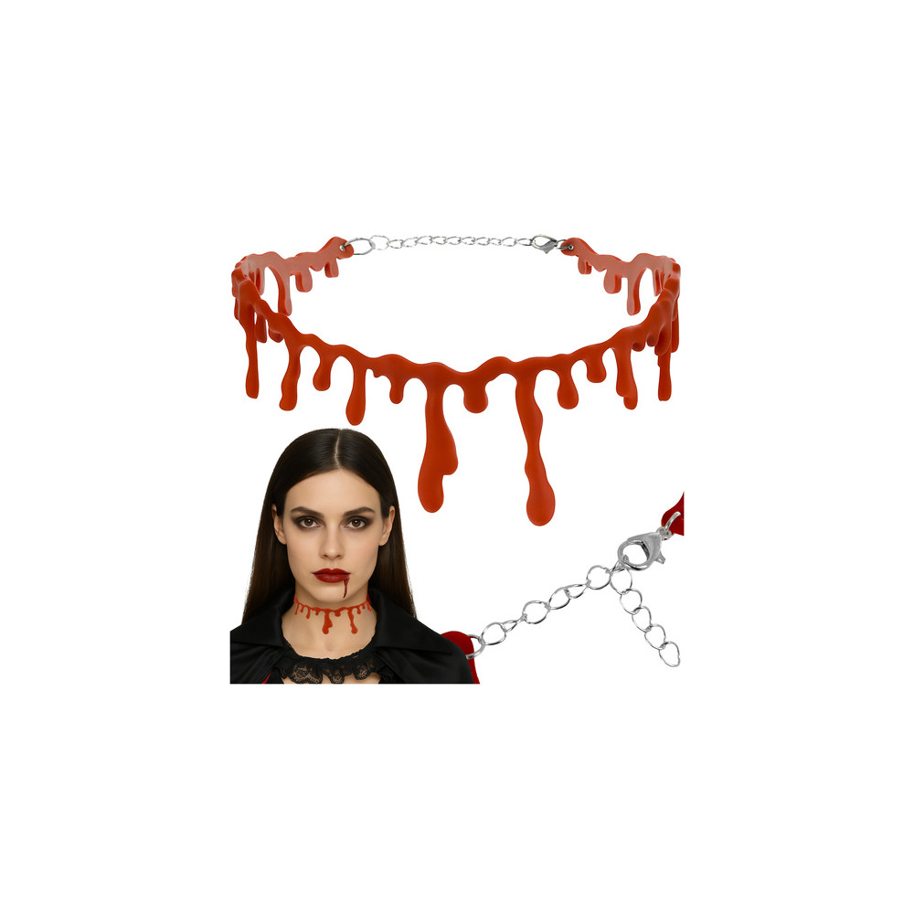 Halloweenský choker náhrdelník s motivem imitace kapající krve. Je vyroben z lehkého materiálu, je pohodlný na nošení a díky nastavitelné sponě pevně padne kolem krku. Ideální k upírským, zombie, čarodějnickým a dalším temným outfitům. Doplněk, který vždy upoutá pozornost.