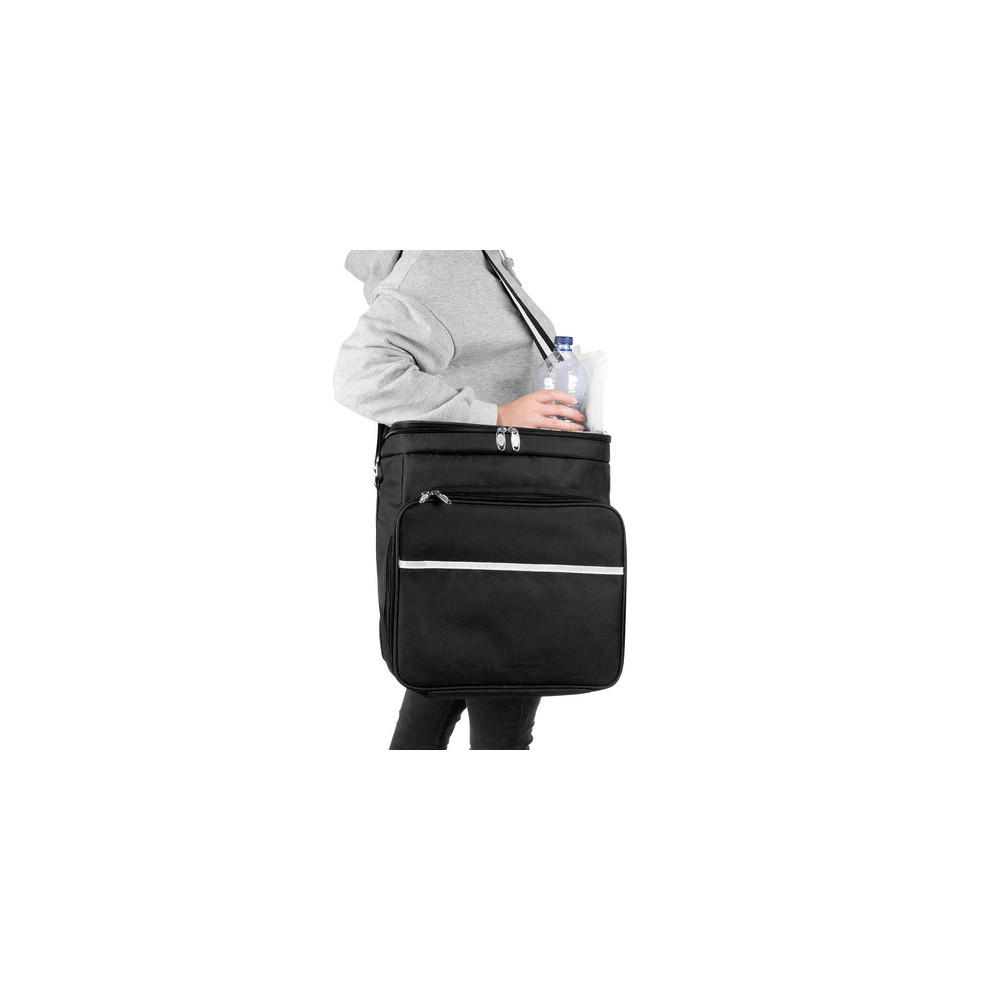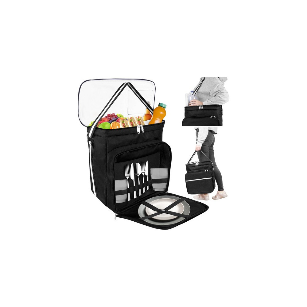 Pikniková termo taška v černé barvě se skvěle hodí na výlety, na dovolenou ale i na nedělní piknik v parku. Je vhodná i pro přepravu talířů, příborů, skleniček a lahví na pití. Pro všechny tyto věci je v tašce speciální místo.