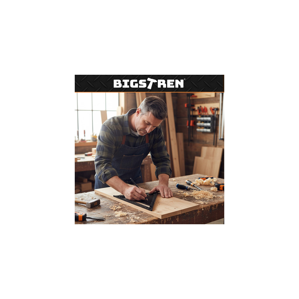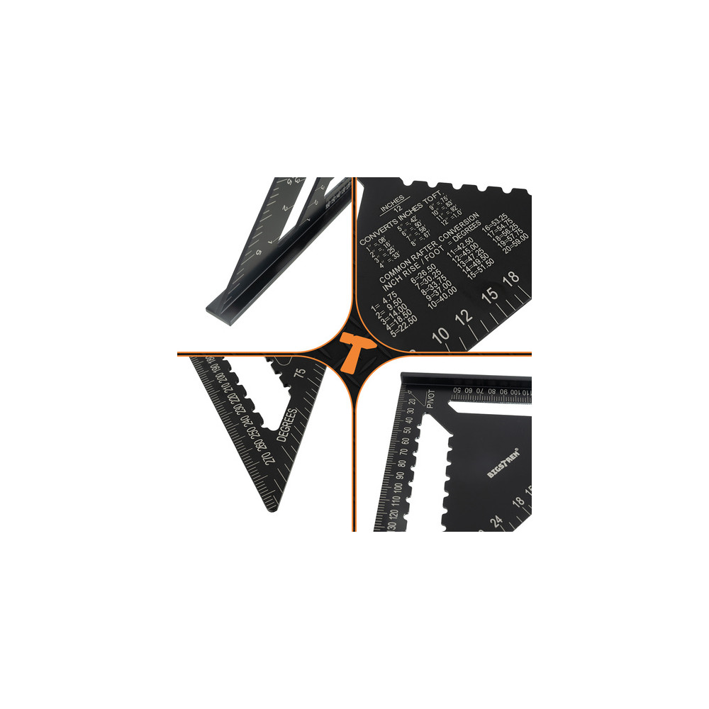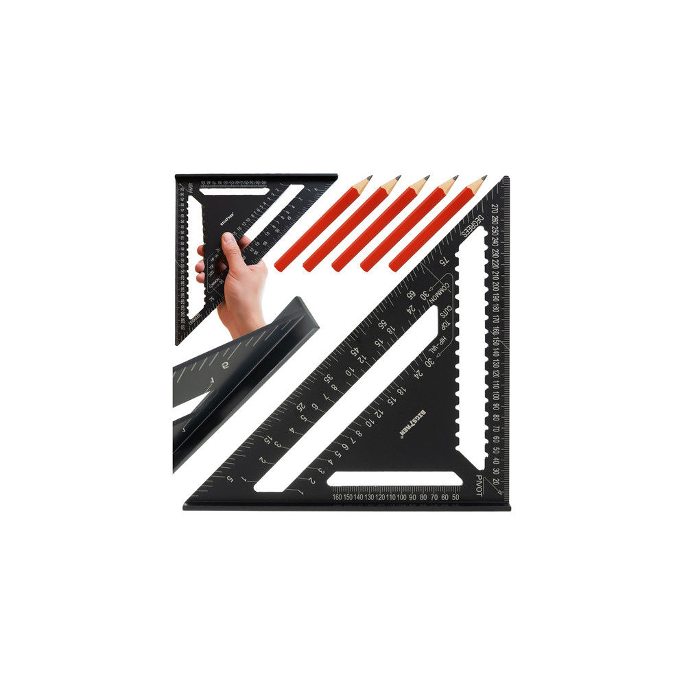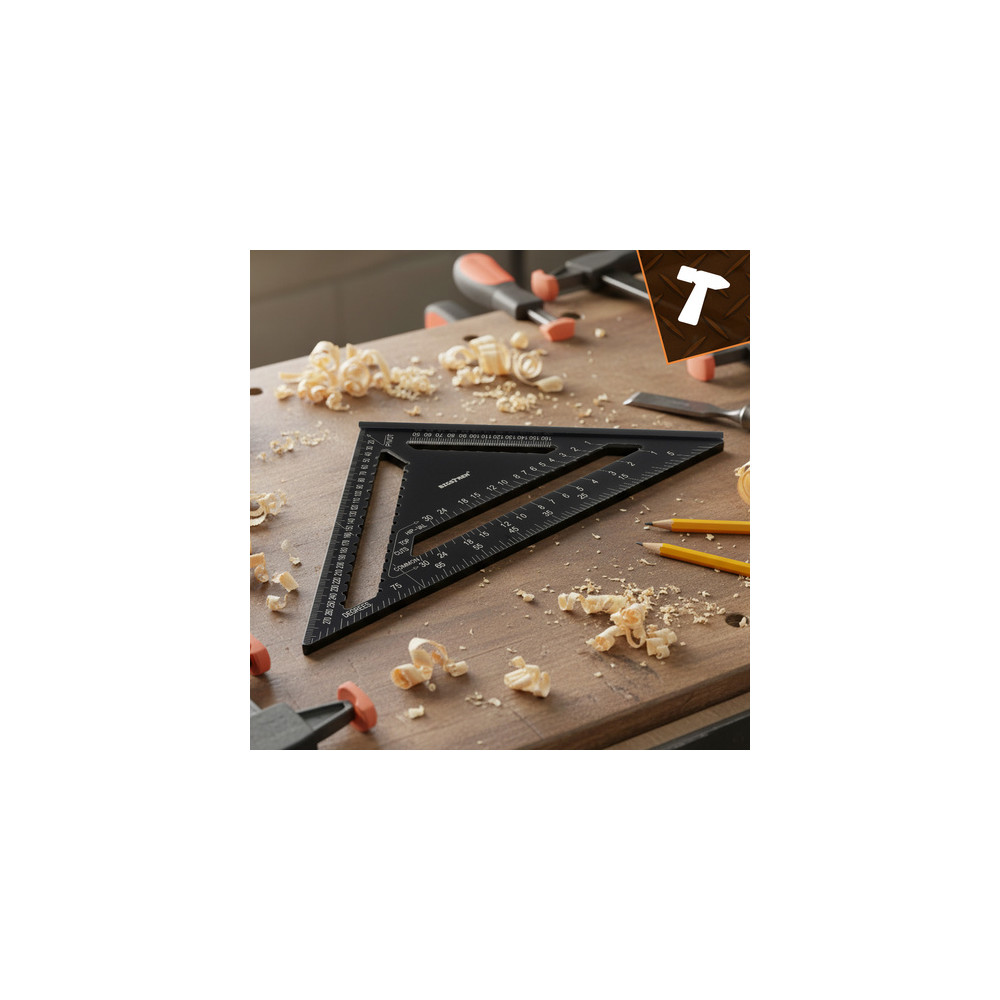 Hliníkový tesařský úhelník pro přesné měření. Vhodné do truhlářské dílny nebo pro kutily na domácí použití.