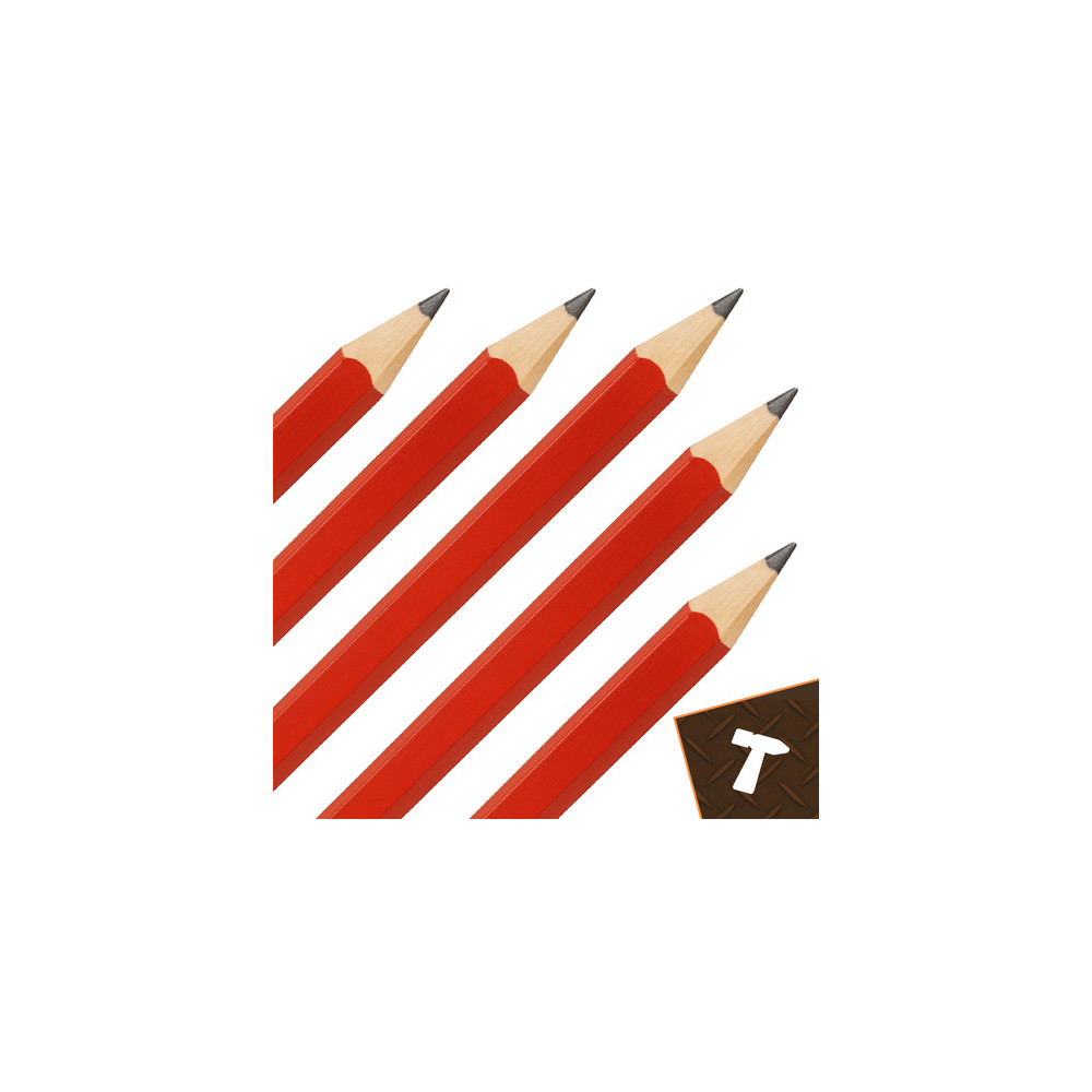 Součástí balení je 5 obyčejných tužek a úhelník s 90° a 45°.