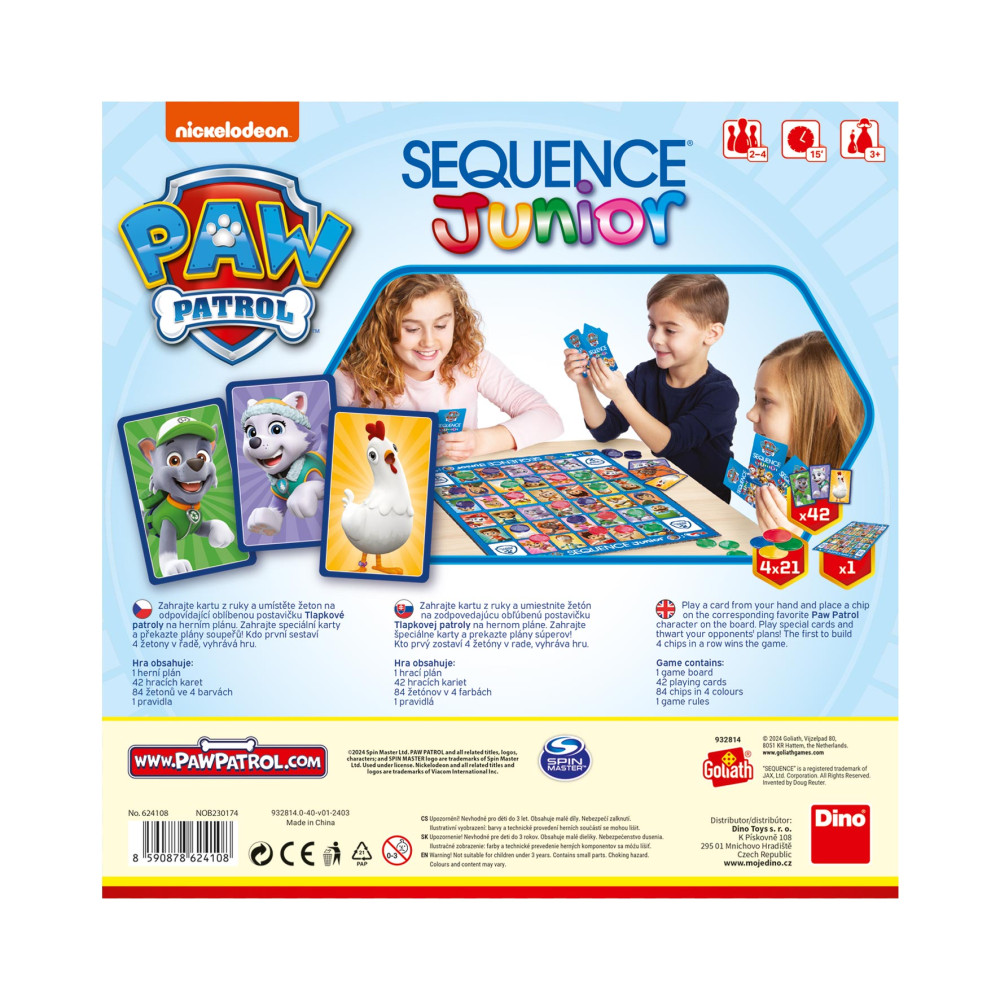 Oblíbená hra Sequence tentokrát pro nejmenší hráče s kamarády z Tlapkové patroly. Zahrajte kartu z ruky a umístěte žeton na odpovídající oblíbenou postavičku Tlapkové patroly na herním plánu. Zahrajte speciální karty a překažte plány soupeřů. Kdo první sestaví 4 žetony v řadě vyhrává hru.