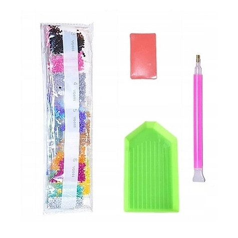 Postup: Obrázek je zakrytý ochrannou folii, kterou sundávejte vždy postupně, tak jak budete aplikovat kamínky. Při sundání celé folie najednou hrozí, že se ztratí viskozita lepidla a kamínky nebudou držet. Plátno obsahuje označení, která jsou umístěna i na sáčcích s kamínky. Podle označení, víte kam který kamínek patří. Nejprve si do hrotu tužky naberete vosk, díky kterému se kamínky snadno přichytí na pero. Kamínky perem aplikujete na obrázek.