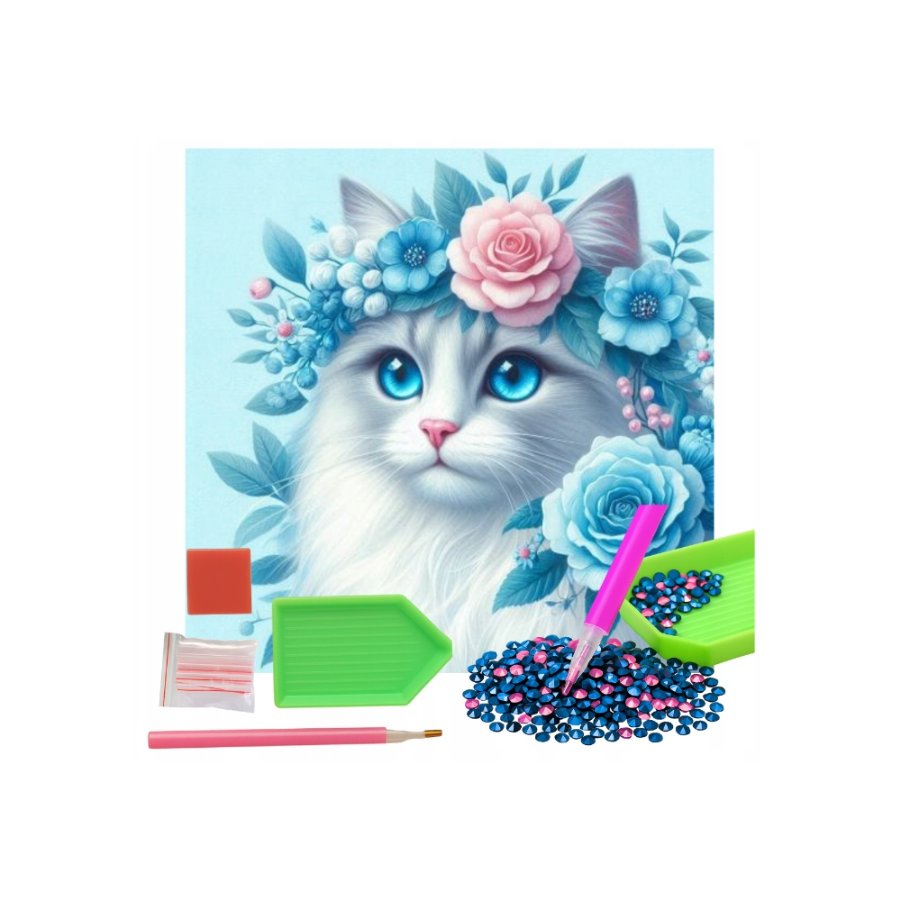 Norimpex Diamantový obrázek malování 30x40cm - Kočka s věnečkem růží