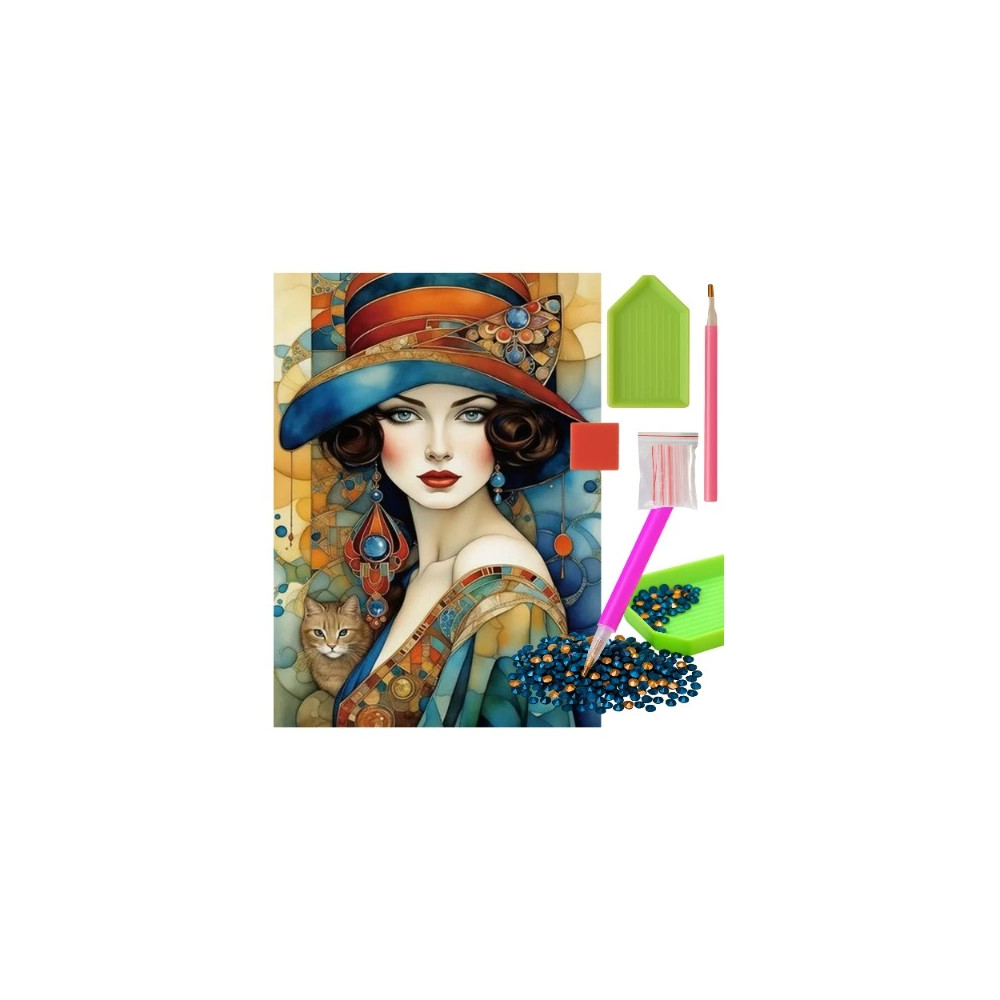 Norimpex Diamantový obrázek malování 30x40cm - Elegantní dáma s kočkou