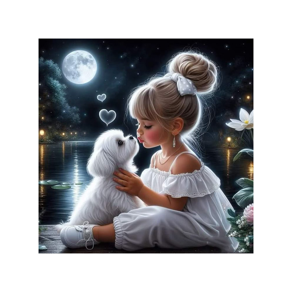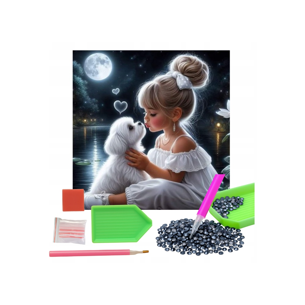 Norimpex Diamantový obrázek malování 30x40cm - Holčička s pejskem v noci