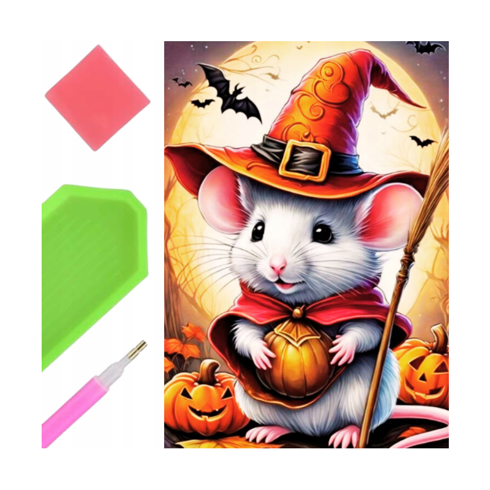 Norimpex Diamantový obrázek malování 30x40cm - Halloweenská myš s dýní