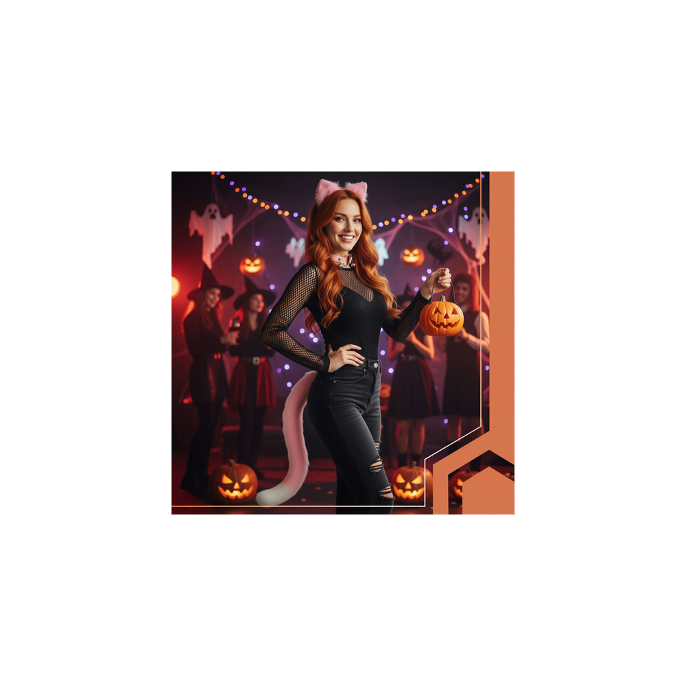 Originální doplněk ke kostýmu jako kočka z umělé kožešiny. Součástí balení jsou chlupatá ouška na čelence, která má univerzální velikost. Dále pak obojek na krk s rolničkami a dlouhý chlupatý ocas, který si připevníte kolem pasu. Uvnitř ocasu je zabudovaný drát, můžete si jej tedy dle libosti nastavit do různých pozic.