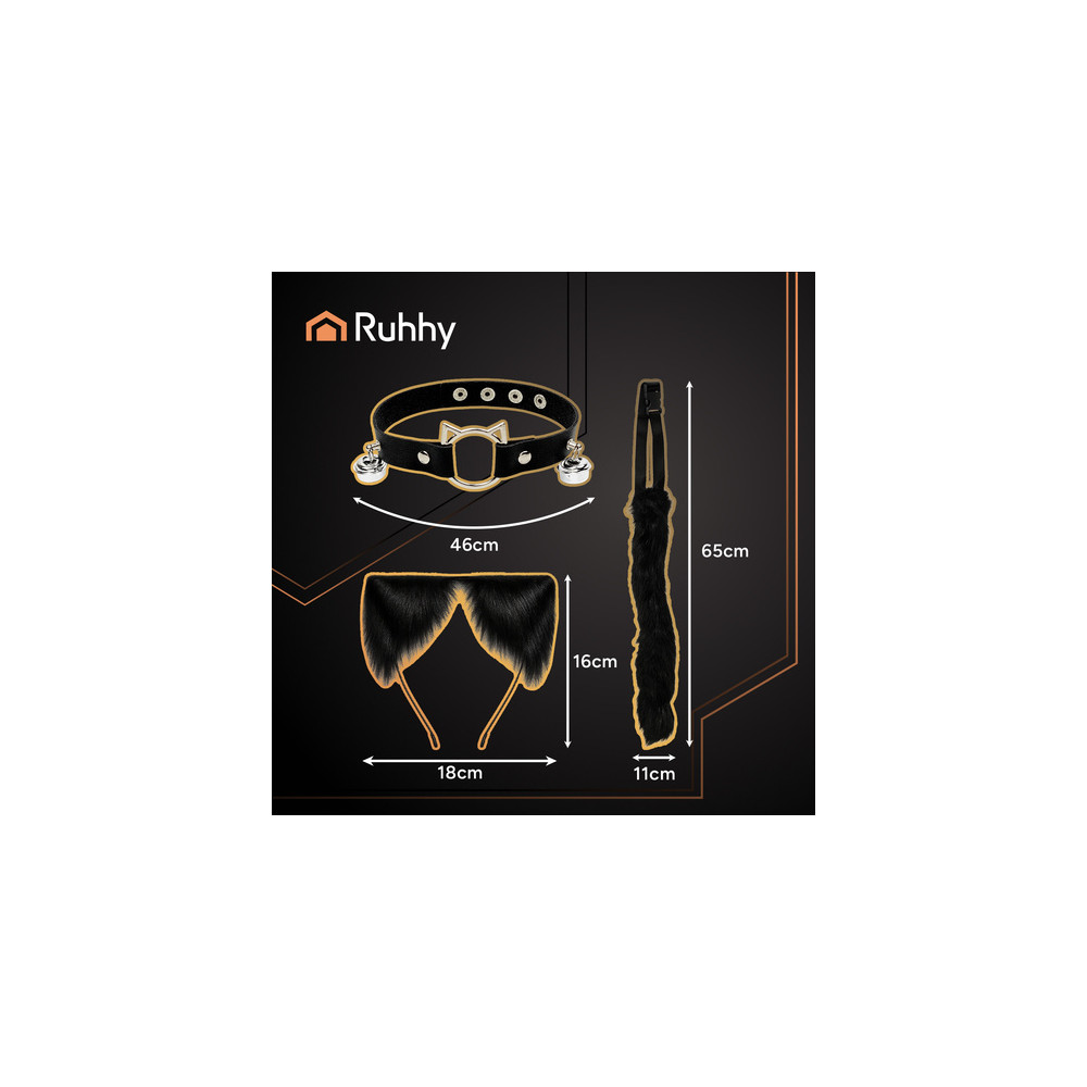 Kostým kočka s obojkem 3 ks černý Ruhhy 26587