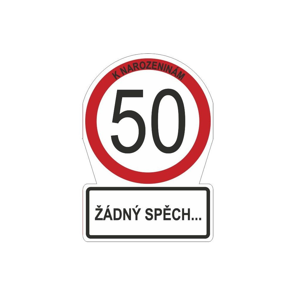 Vtipné přání s motivem dopravní značky s číslem k narozeninám. Součástí je i bílá papírová obálka.