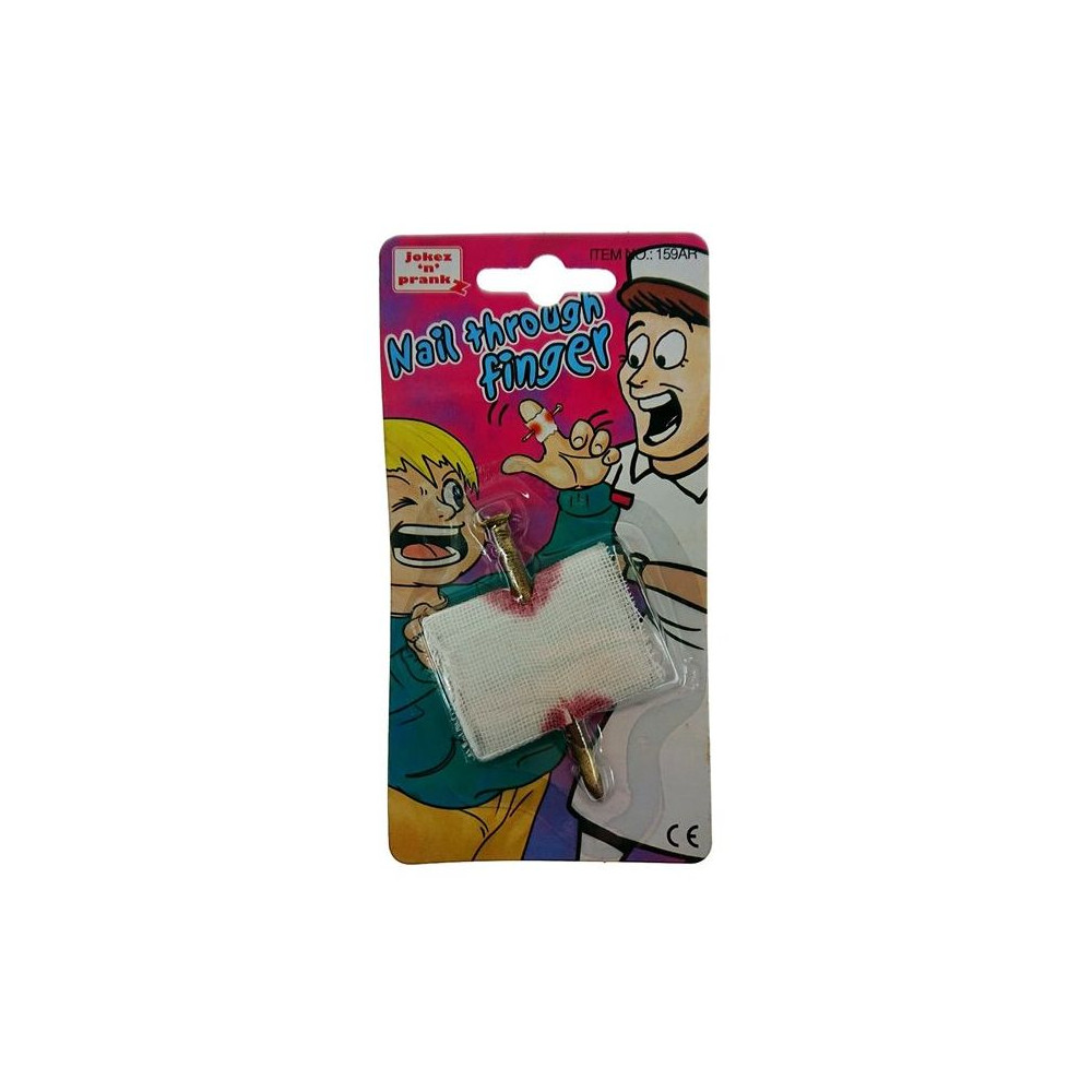 Hřebík skrz prst – děsivá iluze, která vyvolá pořádný šok! Vložte prst do krvavého obvazu s hřebíkem a ukažte ho ostatním. Na první pohled to vypadá, že vám skrz prst projel rezavý hřebík – reakce v podobě zděšení a smíchu zaručena.