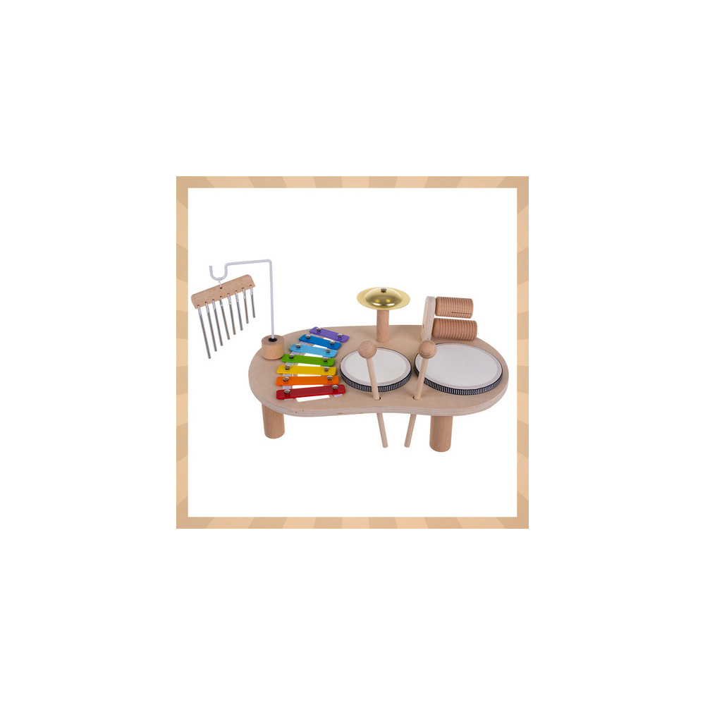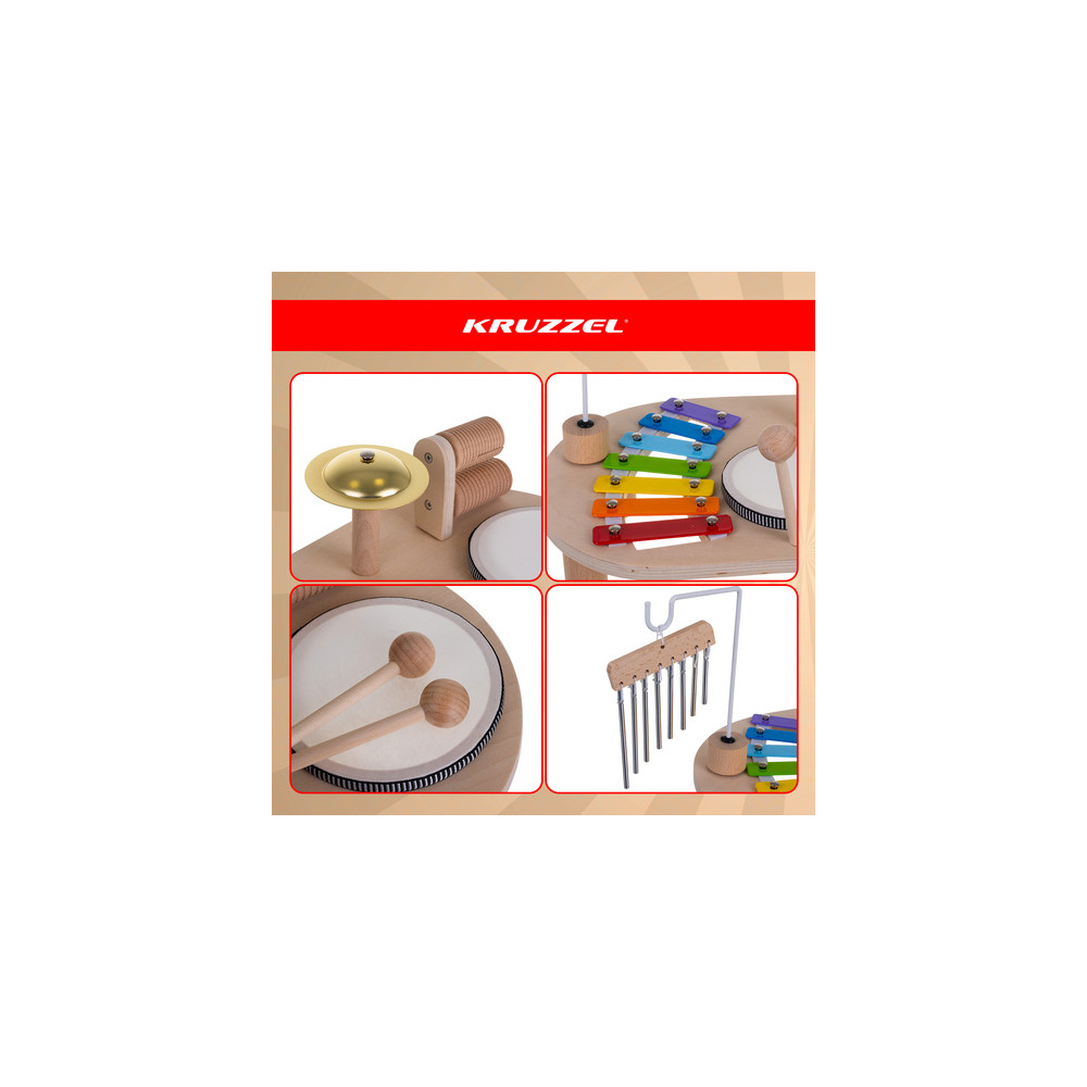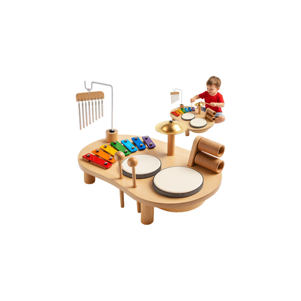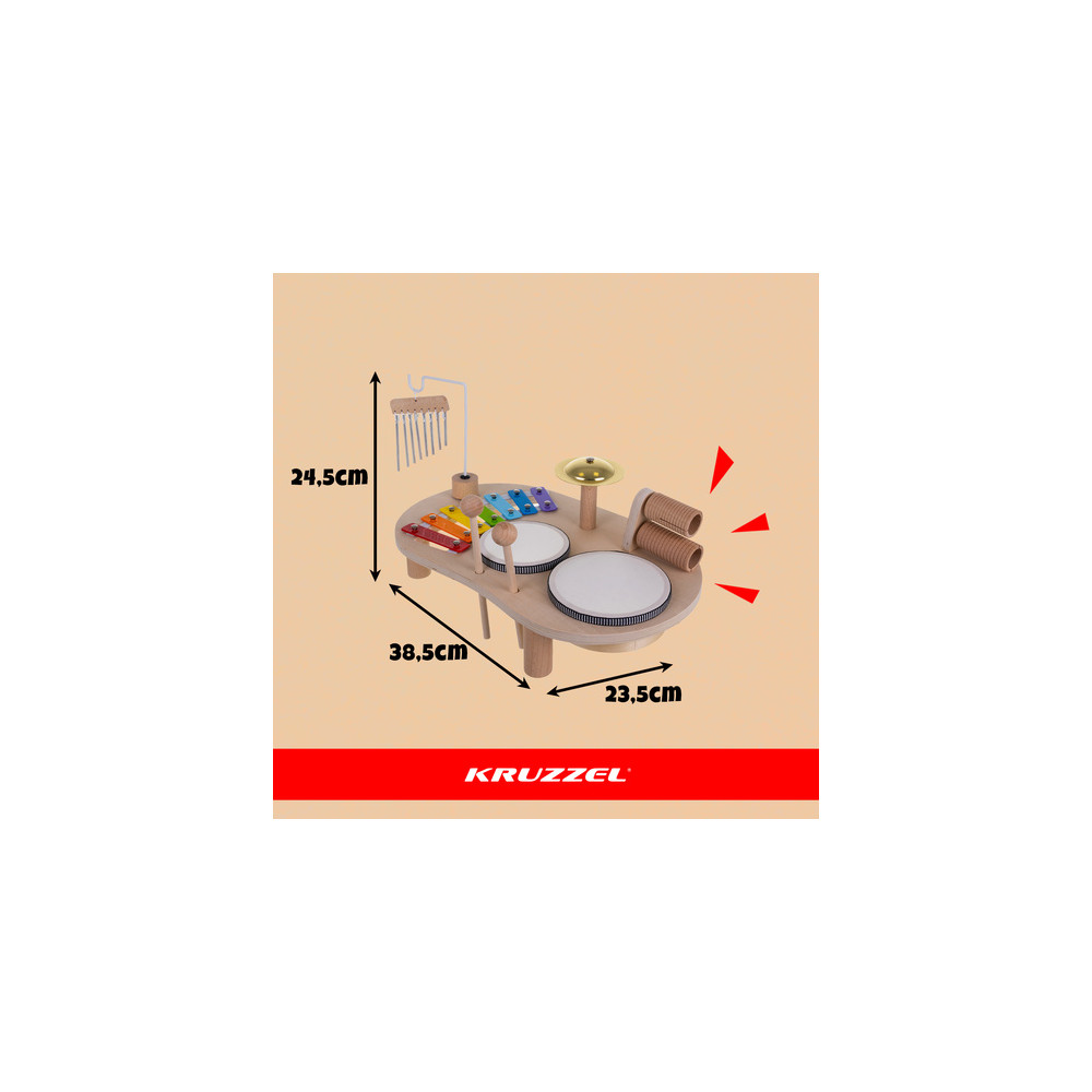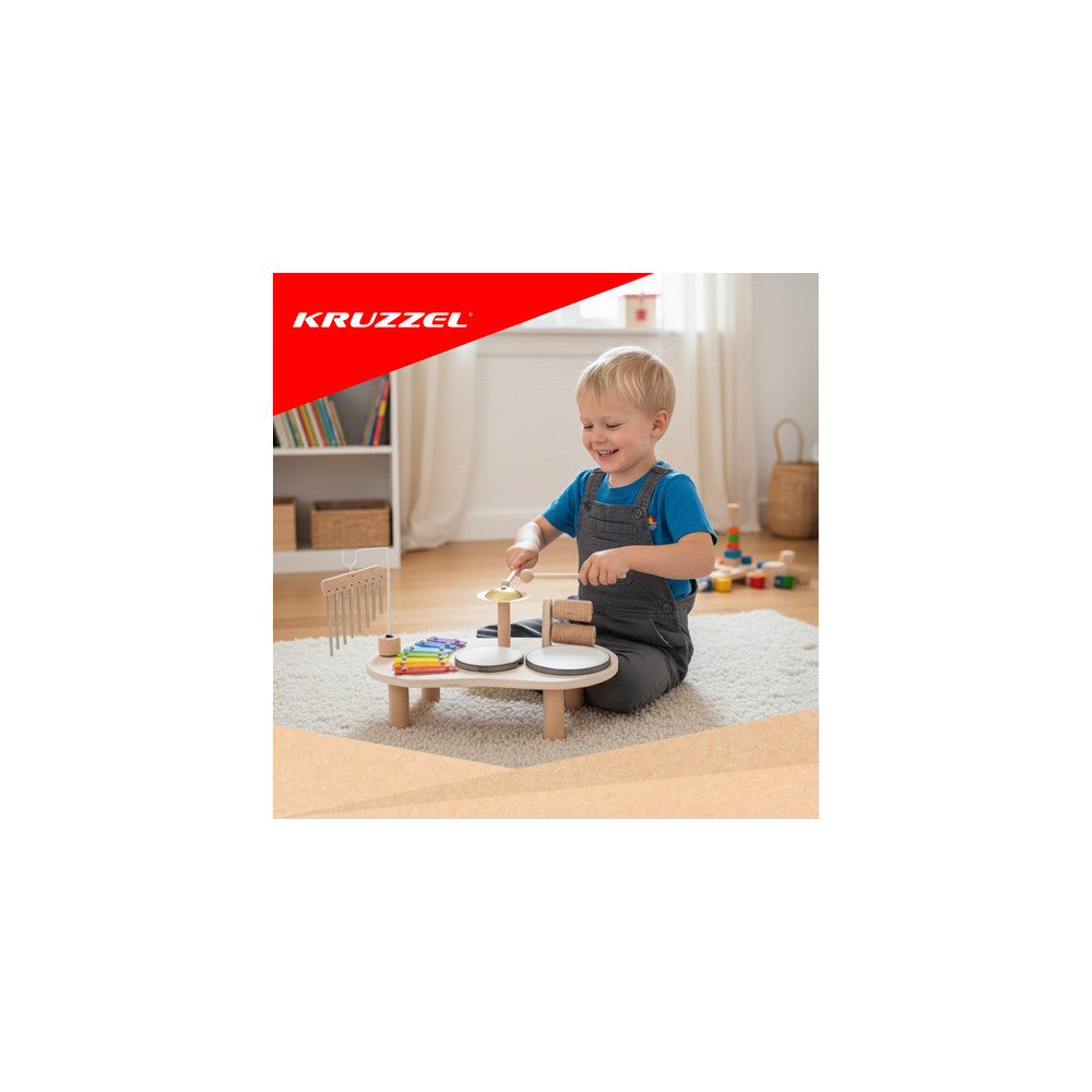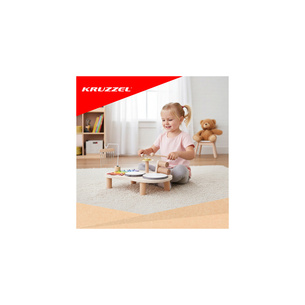 Dopřejte svému dítěti hračku, která ho zároveň rozvíjí a baví! Dřevěný vzdělávací bicí stůl s činely, bubny a chrastítky pro děti je ideální způsob, jak rozvíjet koordinaci, smysly a kreativitu.