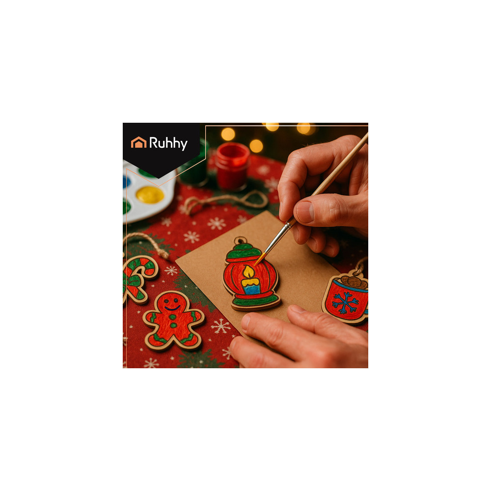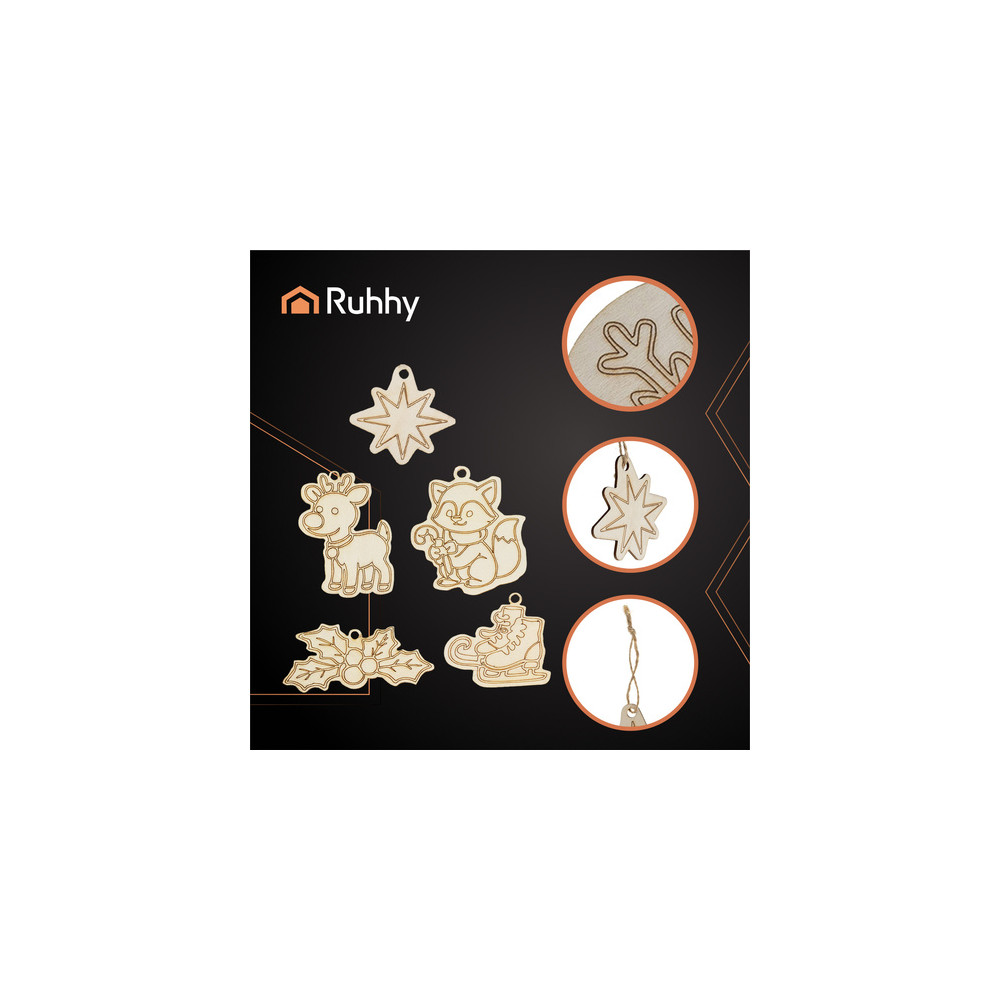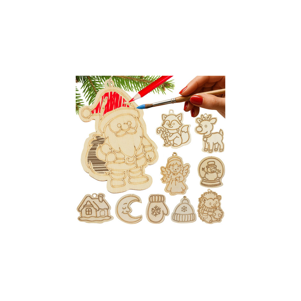 Dřevěné vánoční ozdoby vhodné k domalování. Milá předvánoční zábava pro celou rodinu. Šňůrky na uvázání ozdob jsou součástí balení.