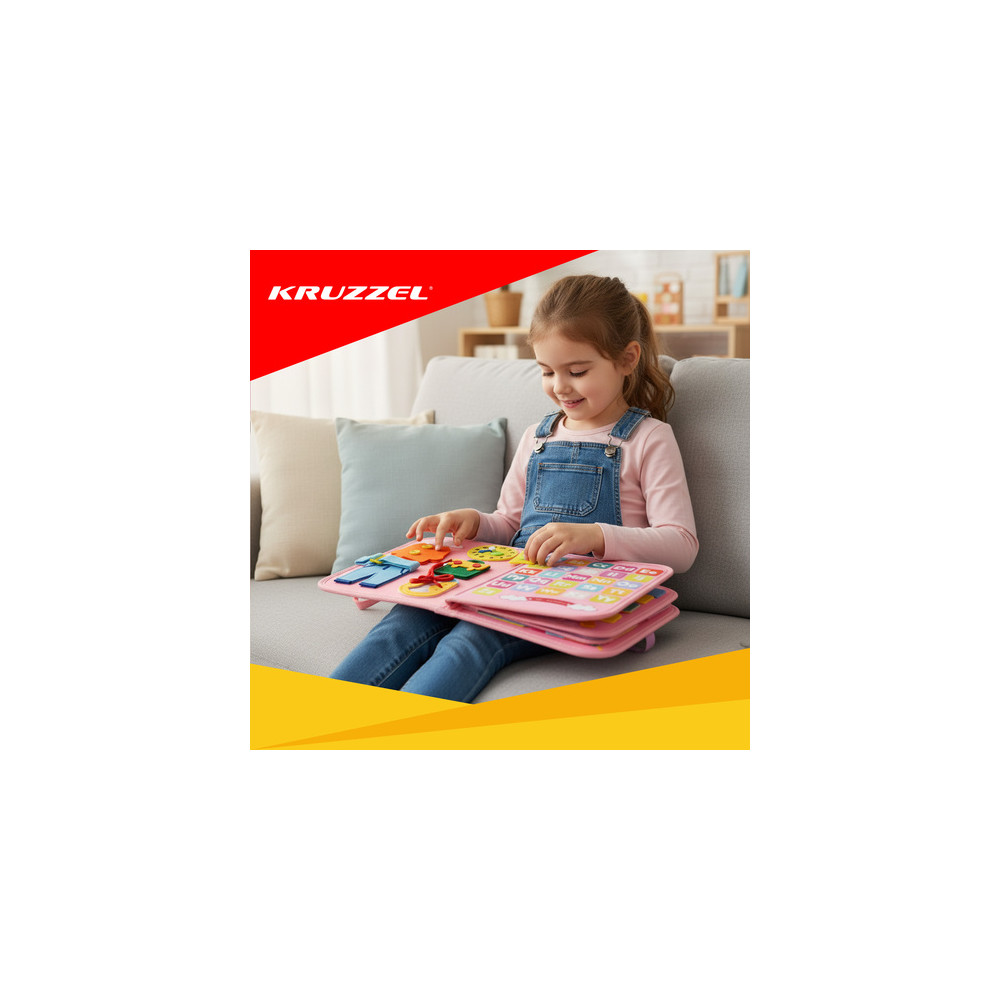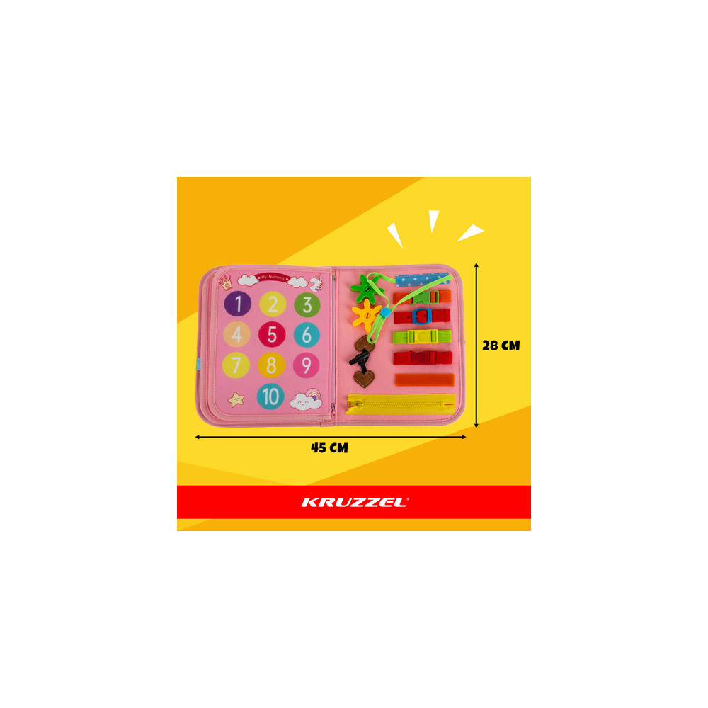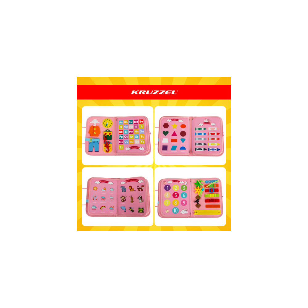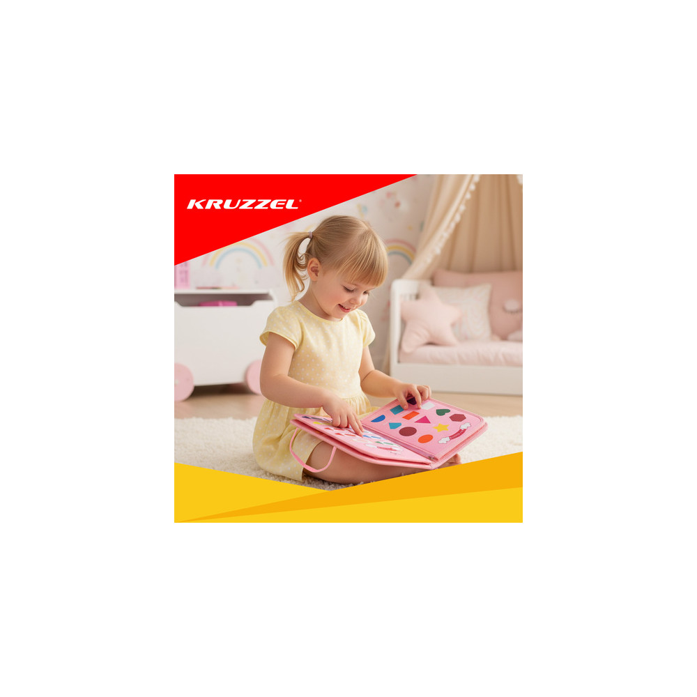 Senzorická vzdělávací knížka pro děti plný různých manipulačních aktivit. Tato interaktivní hračka stimuluje manuální rozvoj, soustředění a kreativitu a zapojuje všechny smysly dítěte.
