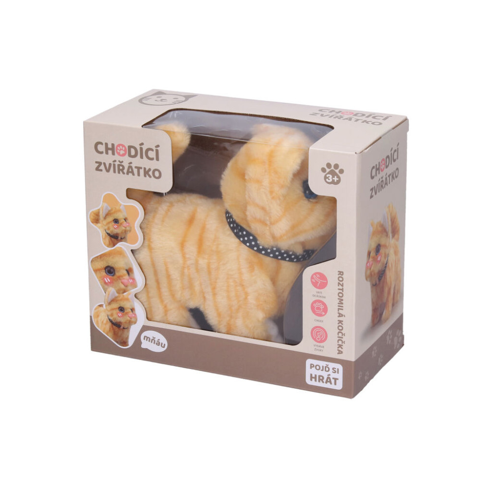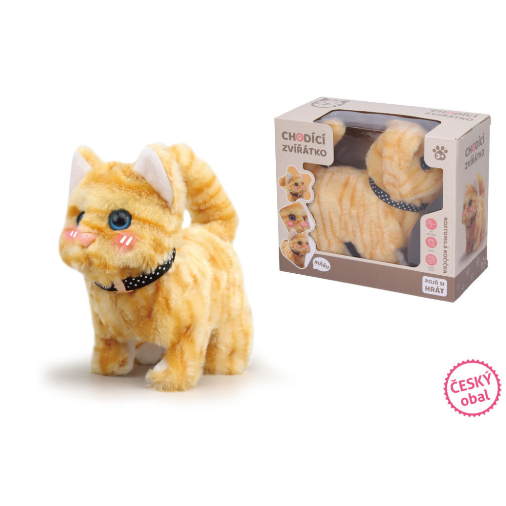 Roztomilá kočička v rezavé barvě na baterie. Kočka chodí, červená se, vrtí ocáskem. světelné a zvukové efekty. Vypínač on/off