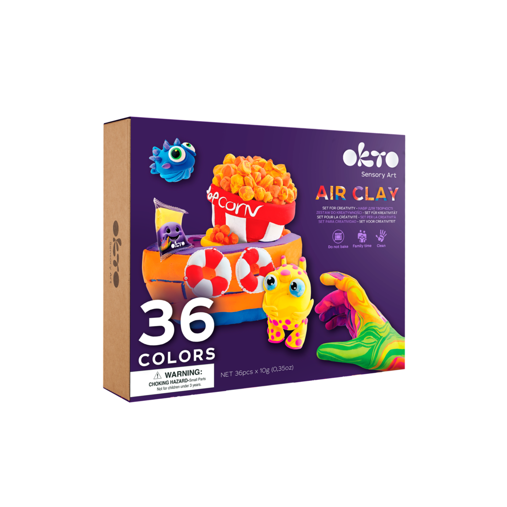 Kreativní sada značky OKTO, která obsahuje samoschnoucí modelovací hmota v setu 36 barev.