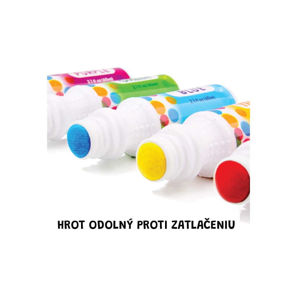Součástí balení je 8 barev v tubě a 10 pracovních listů s omalovánkami. Možnost stažení PDF souboru s dalšími 108 aktivitami. Barvy jsou netoxické a bezpečné pro děti.