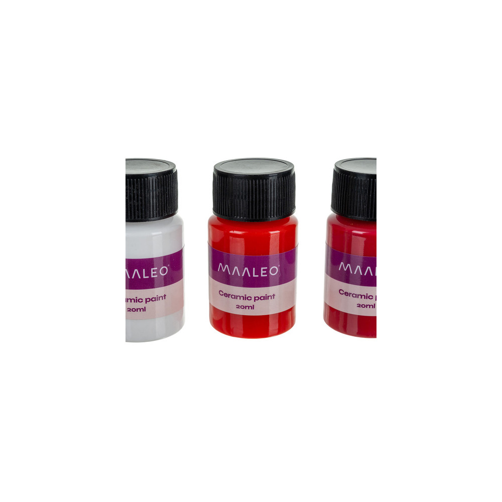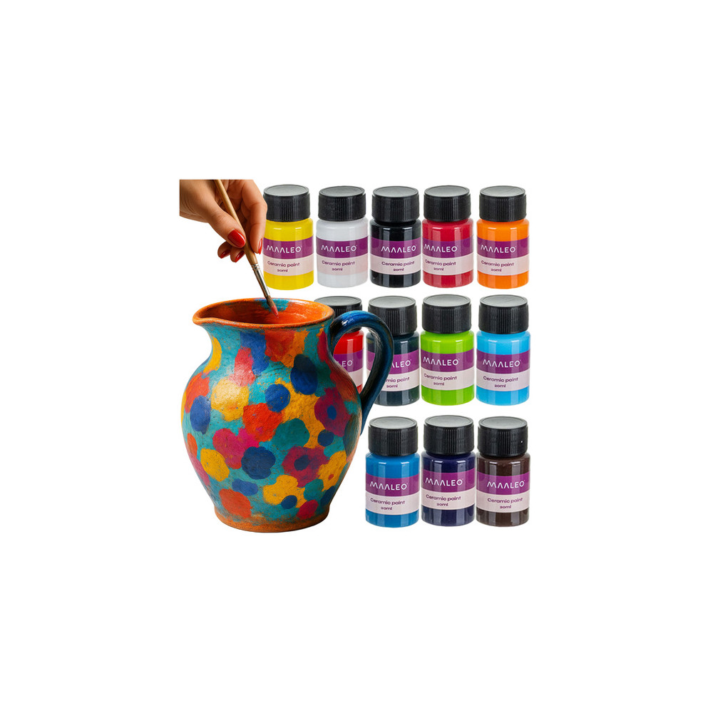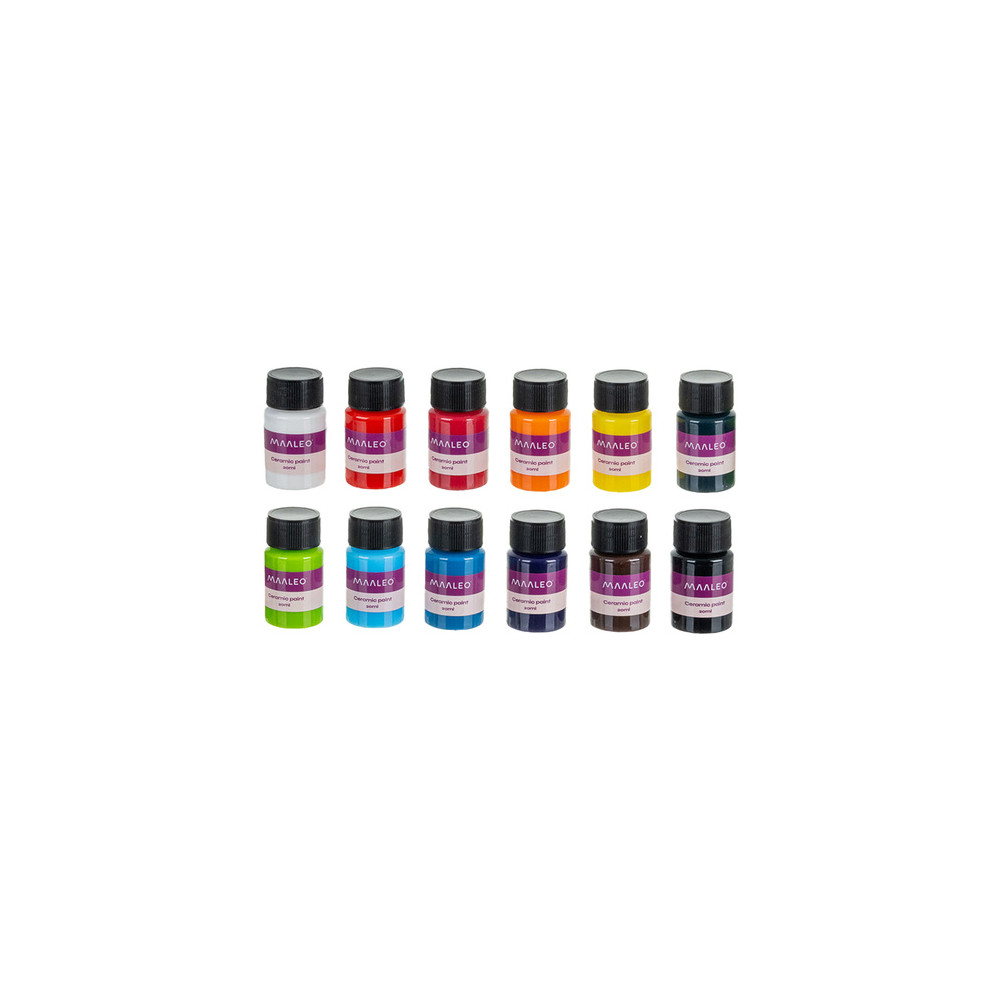 Sada 12 barev na keramiku pro vytvoření dlouhotrvajících dekorací. Intenzivně pigmentované barvy se snadno nanášejí i míchají. Po vytvrzení při 100 stupních po dobu 30 minut se stanou odolnými proti oděru a zachovají si lesk po mnoho let.