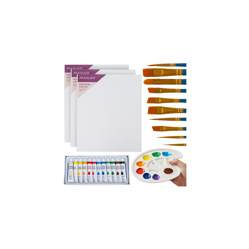 Sada kreativních malířských potřeb s akrylovými barvami, štětci, plátny a paletou. Kompletní sada pro milovníky umění. Vhodné pro rozvoj kreativity a fantazie. Barvy jsou ředitelné vodou a rychle zasychají. Součástí balení jsou různé druhy štětců.