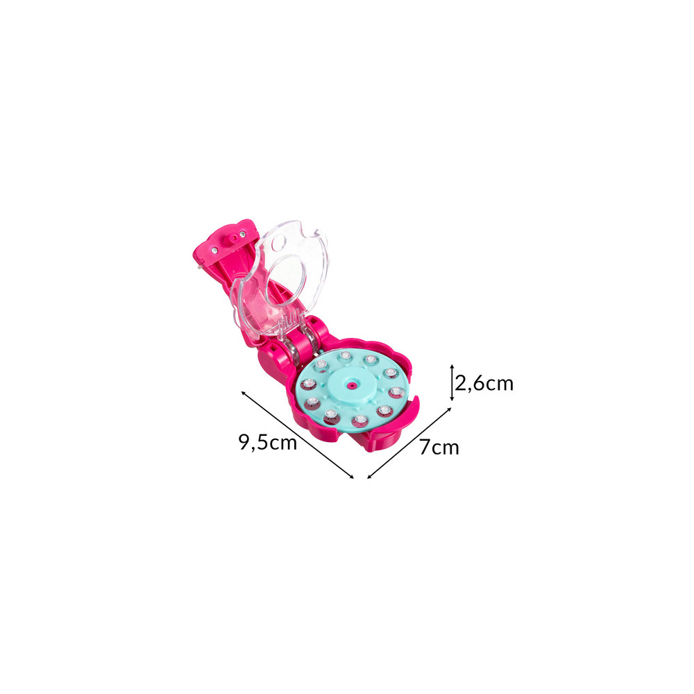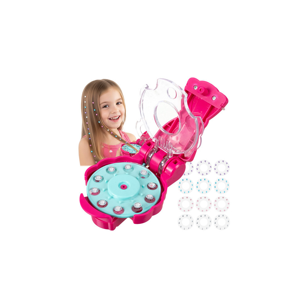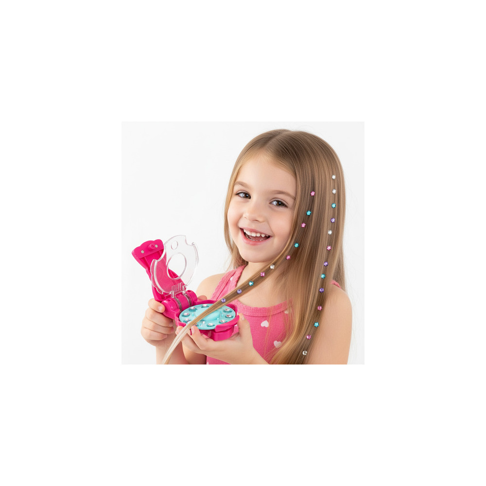 Stroj na zdobení vlasů je kreativní hračka, která dodá třpyt vlasům, oblečení a dalším doplňkům. Rychlá aplikace diamantů je umožněna díky mechanismu na stroji.