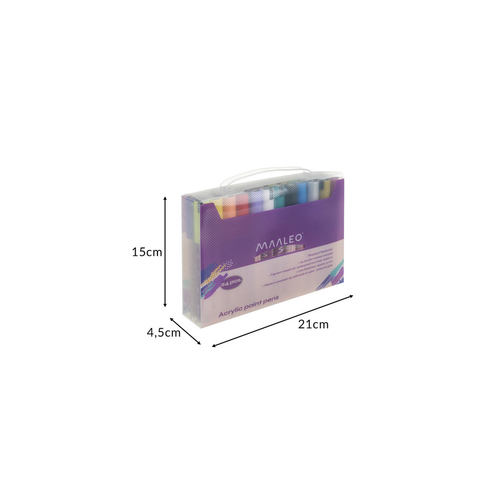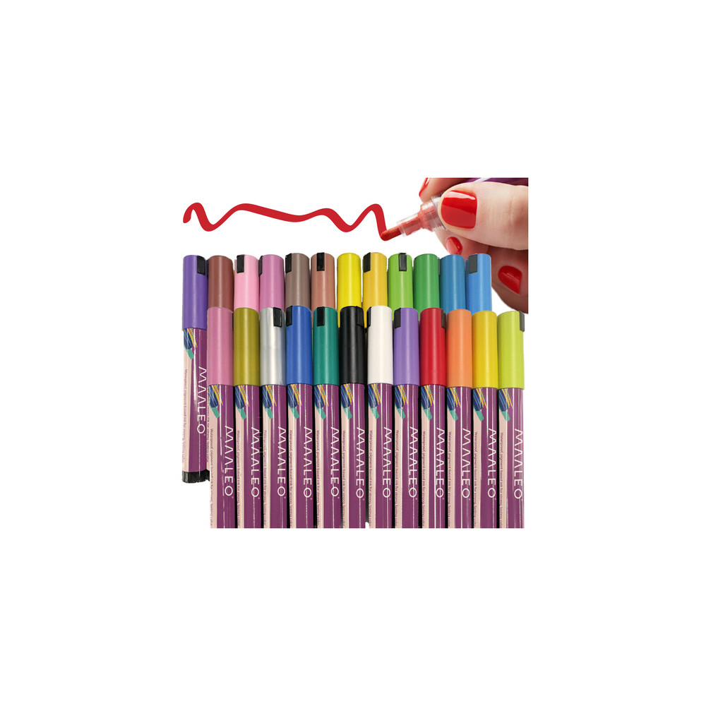 Sada 24 akrylových fixů pro začínající umělce i nadšence do dekorování. Díky dlouhotrvajícímu inkoustu poskytují fixy intenzivní, voděodolné barvy bez rozmazávání nebo blednutí. Fixy jsou vhodné pro papír, sklo, dřevo, látku, kámen a porcelán.
