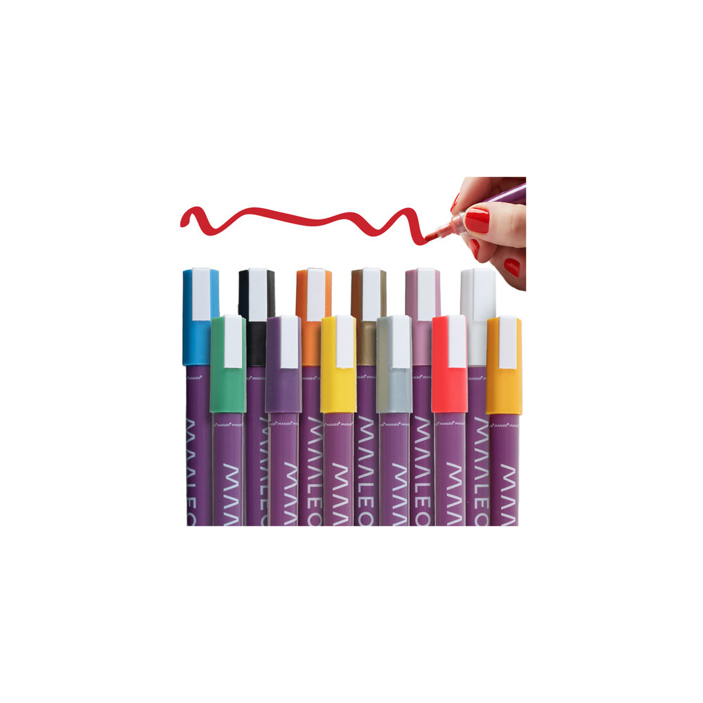 Sada 12 akrylových fixů pro začínající umělce i nadšence do dekorování. Díky dlouhotrvajícímu inkoustu poskytují fixy intenzivní, voděodolné barvy bez rozmazávání nebo blednutí. Fixy jsou vhodné pro papír, sklo, dřevo, látku, kámen a porcelán.