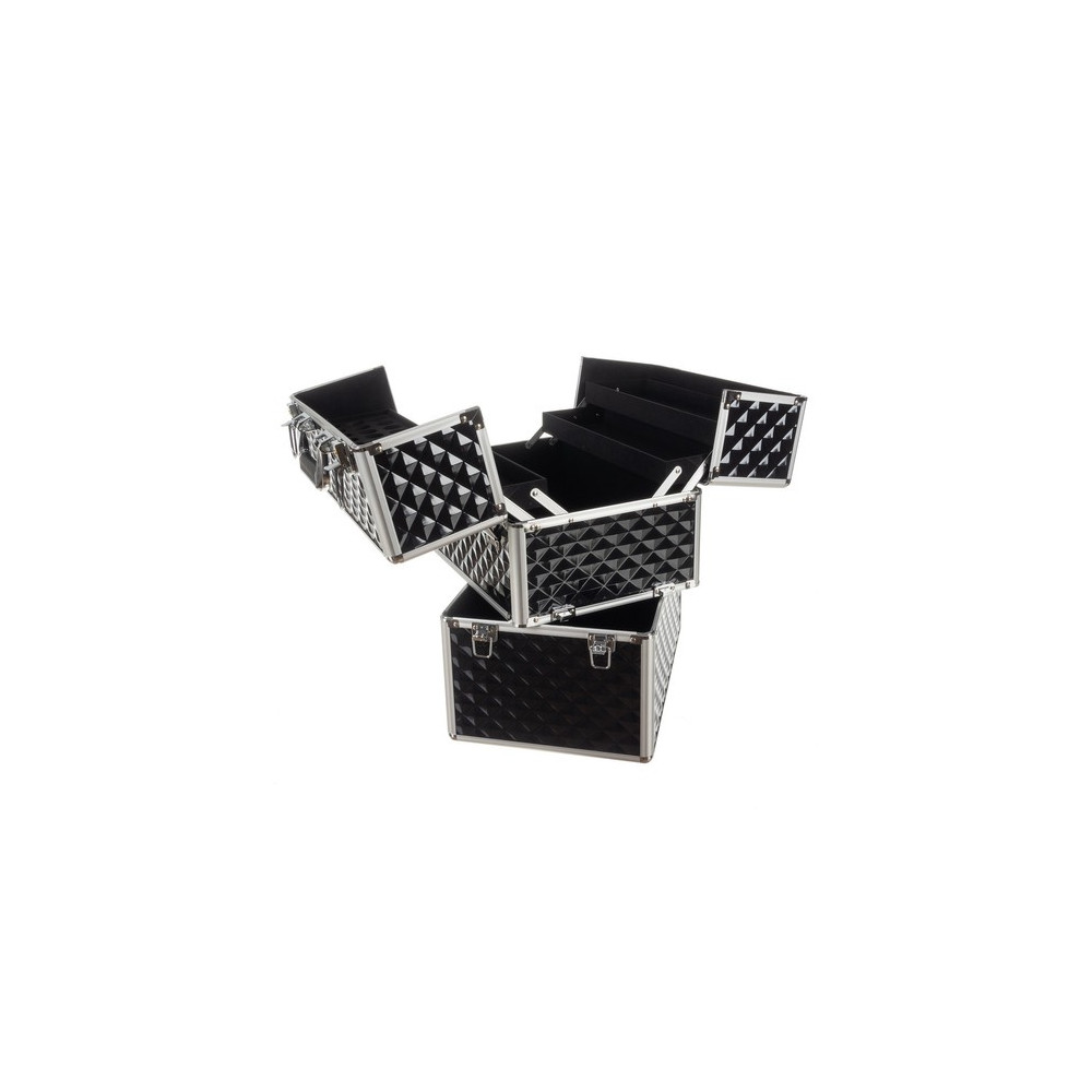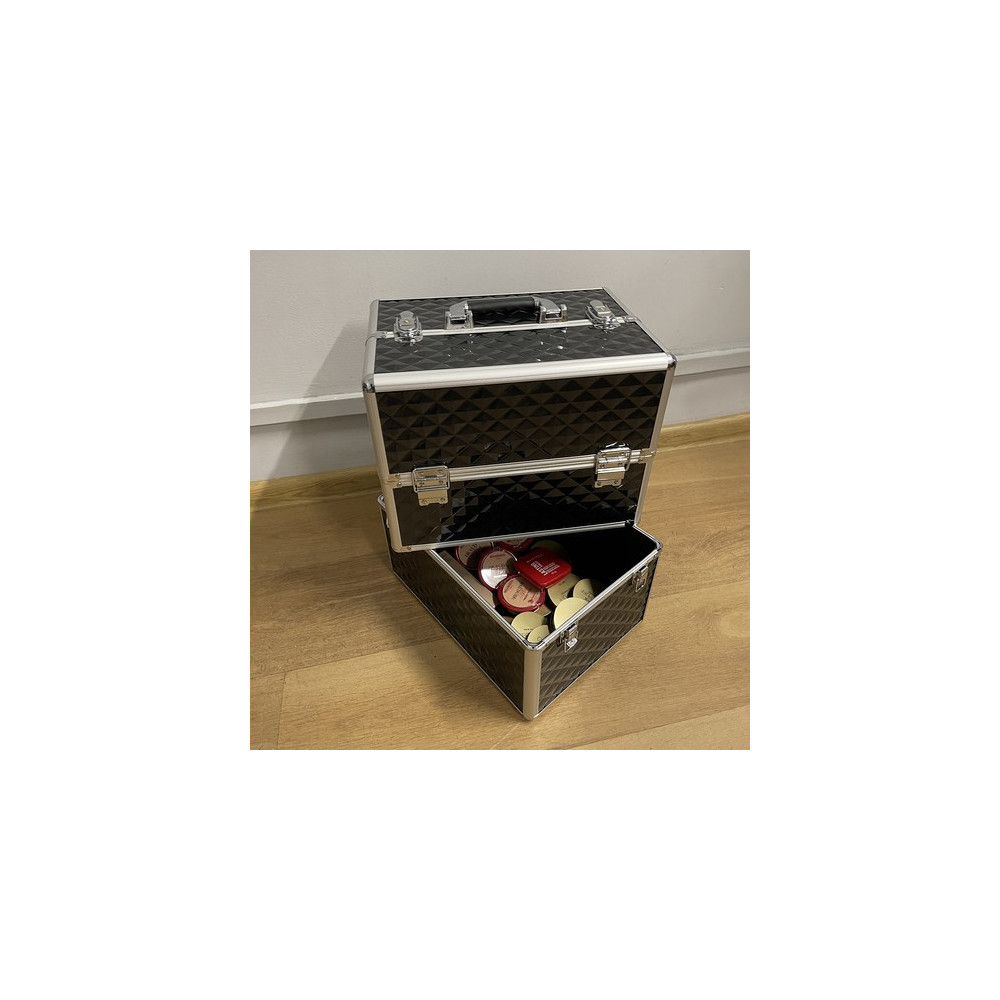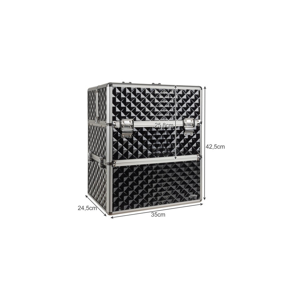 Prostorný uzamykatelný kosmetický kufřík v černé barvě je ideální pro organizaci kosmetiky a dalších doplňků. V tomto dvoudílném kufříku budete mít každý produkt vždy na svém místě. Kufřík má také pohodlnou rukojeť pro přenášení, poličky pro snadnou organizaci a jeden ze zásobníků je vybaven organizérem na laky na nehty.