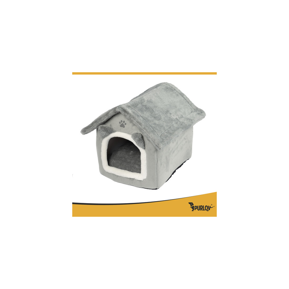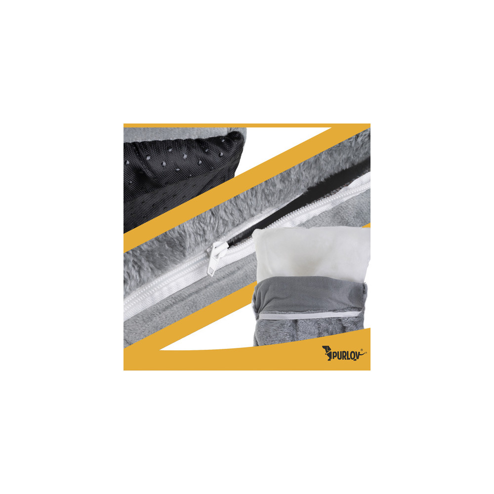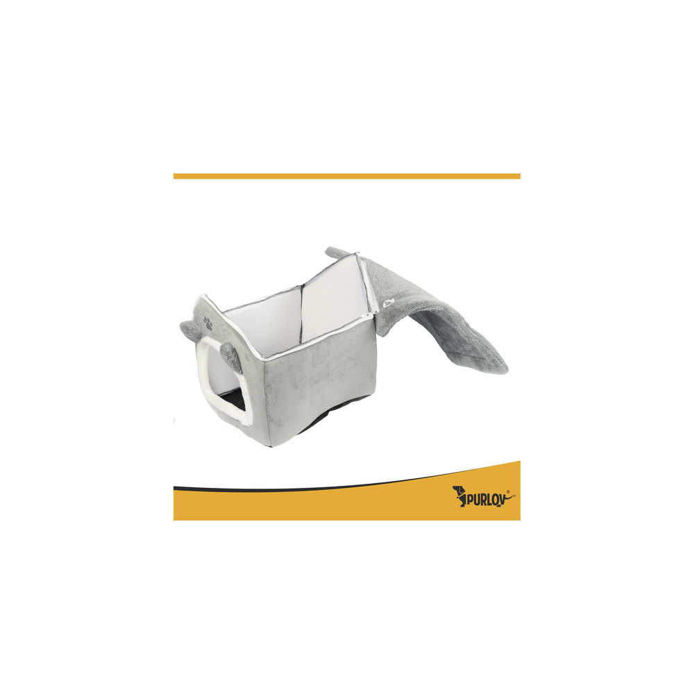 Šedý pelíšek v elegantním designu zajišťuje pohodlí a relaxaci pro všechny kočky. Měkký plyšový vnitřek je ideální pro celoroční pohodlí a teplo. Díky praktickému zipu lze stříšku snadno sundat pro osvěžení interiéru nebo důkladné vyčištění. Polštář lze vyjmout a prát v pračce na 30 °C.