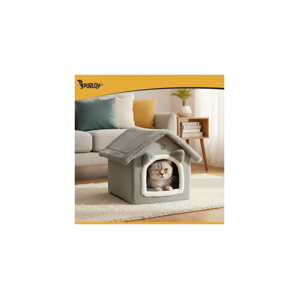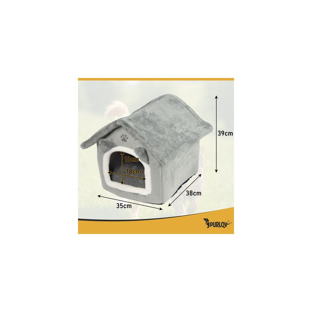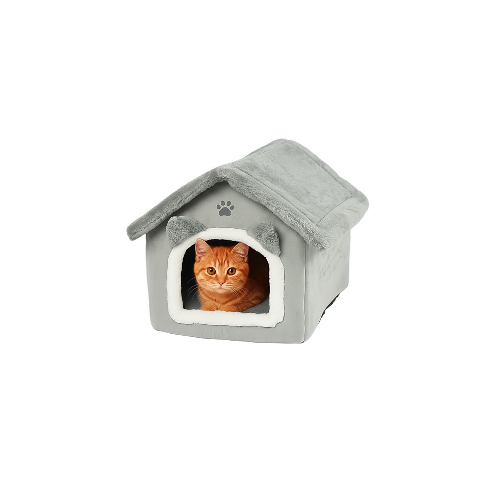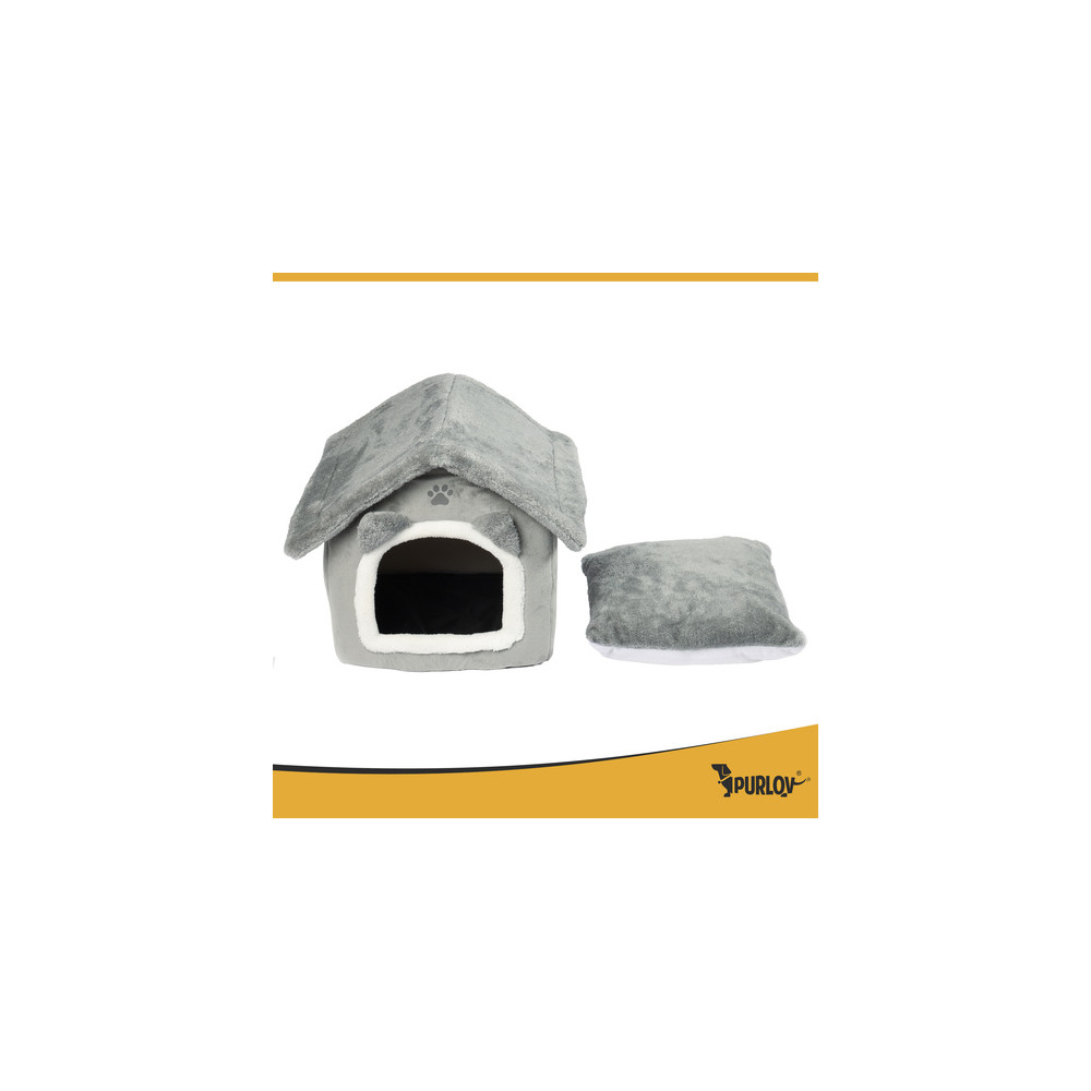Šedý pelíšek v elegantním designu zajišťuje pohodlí a relaxaci pro všechny kočky. Měkký plyšový vnitřek je ideální pro celoroční pohodlí a teplo. Díky praktickému zipu lze stříšku snadno sundat pro osvěžení interiéru nebo důkladné vyčištění. Polštář lze vyjmout a prát v pračce na 30 °C.