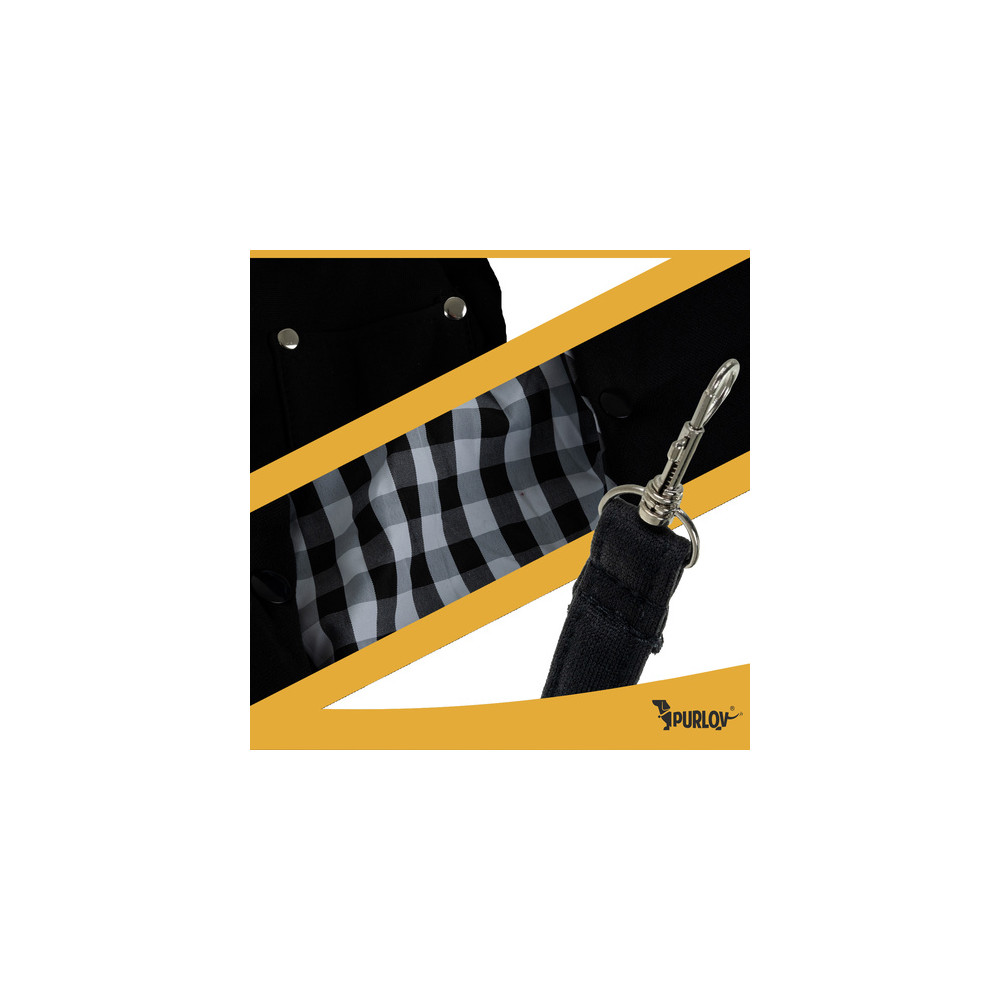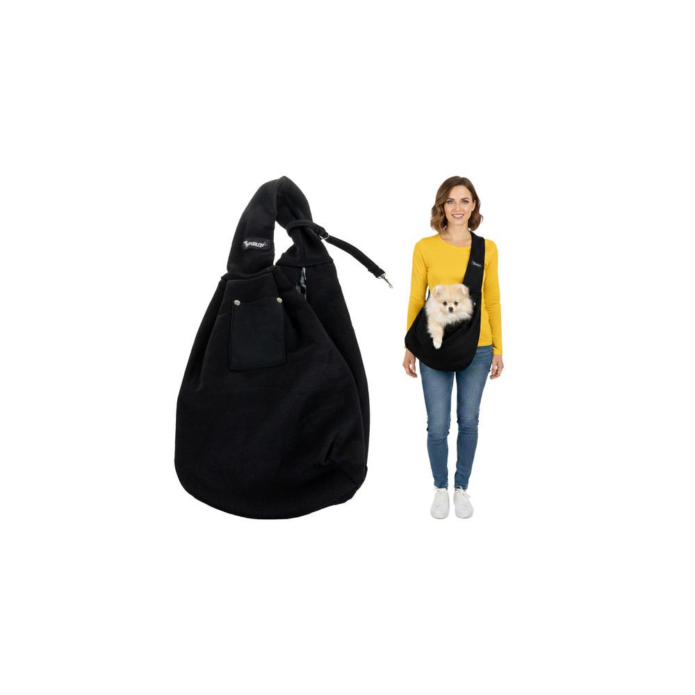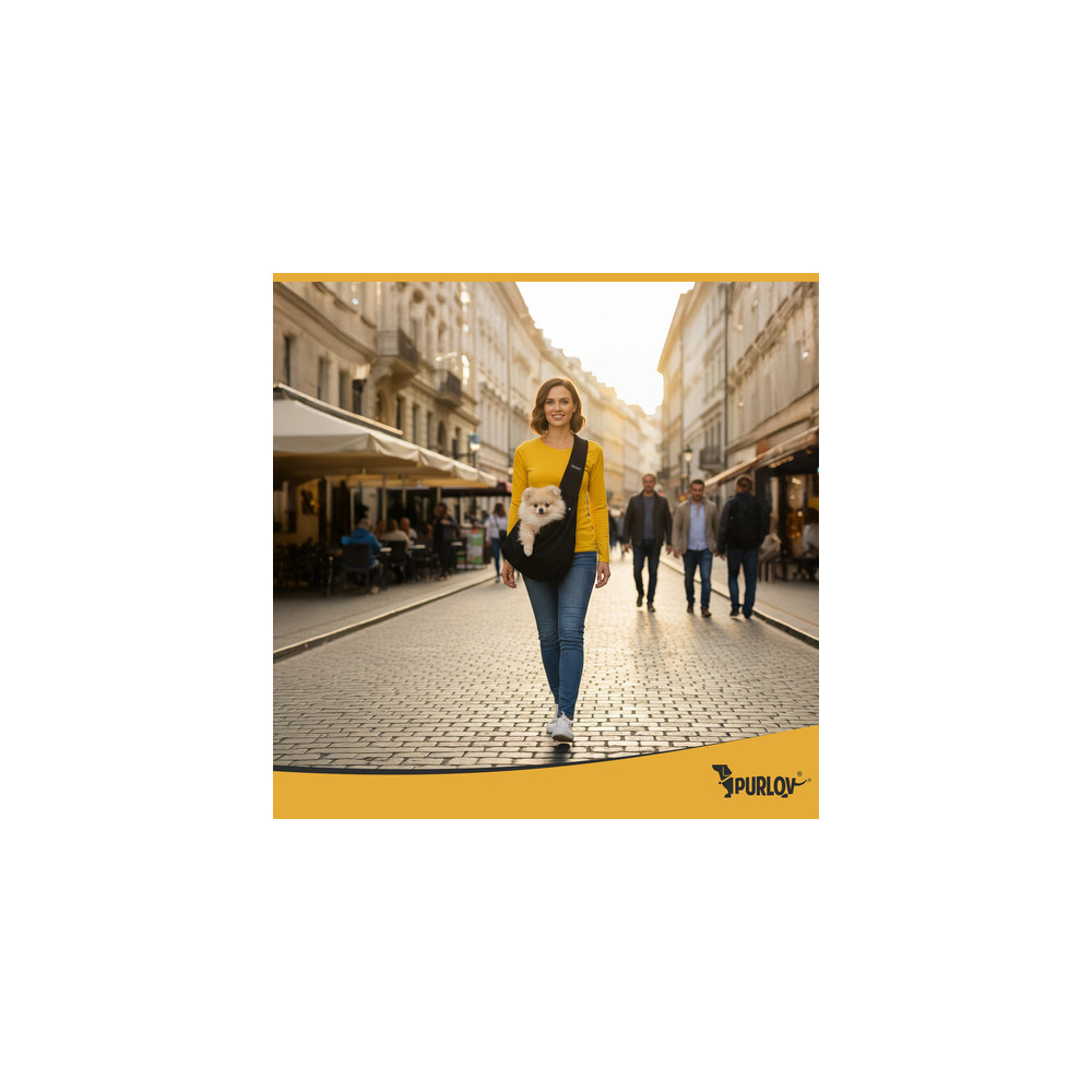 Pohodlná přepravní taška pro domácí mazlíčky s širokým pásem a měkkou podšívkou. Perfektní řešení pro majitele, kteří chtějí mít svého mazlíčka neustále u sebe. Měkké polstrování, široký pas a vnitřní vodítko zajišťují pohodlí a bezpečnost při procházkách, nakupování nebo návštěvách veterináře. Malá vestavěná kapsa pojme klíče, pamlsky, sáčky na exkrementy nebo telefon. Díky tomu máte volné ruce a nemusíte s sebou nosit další tašku.
