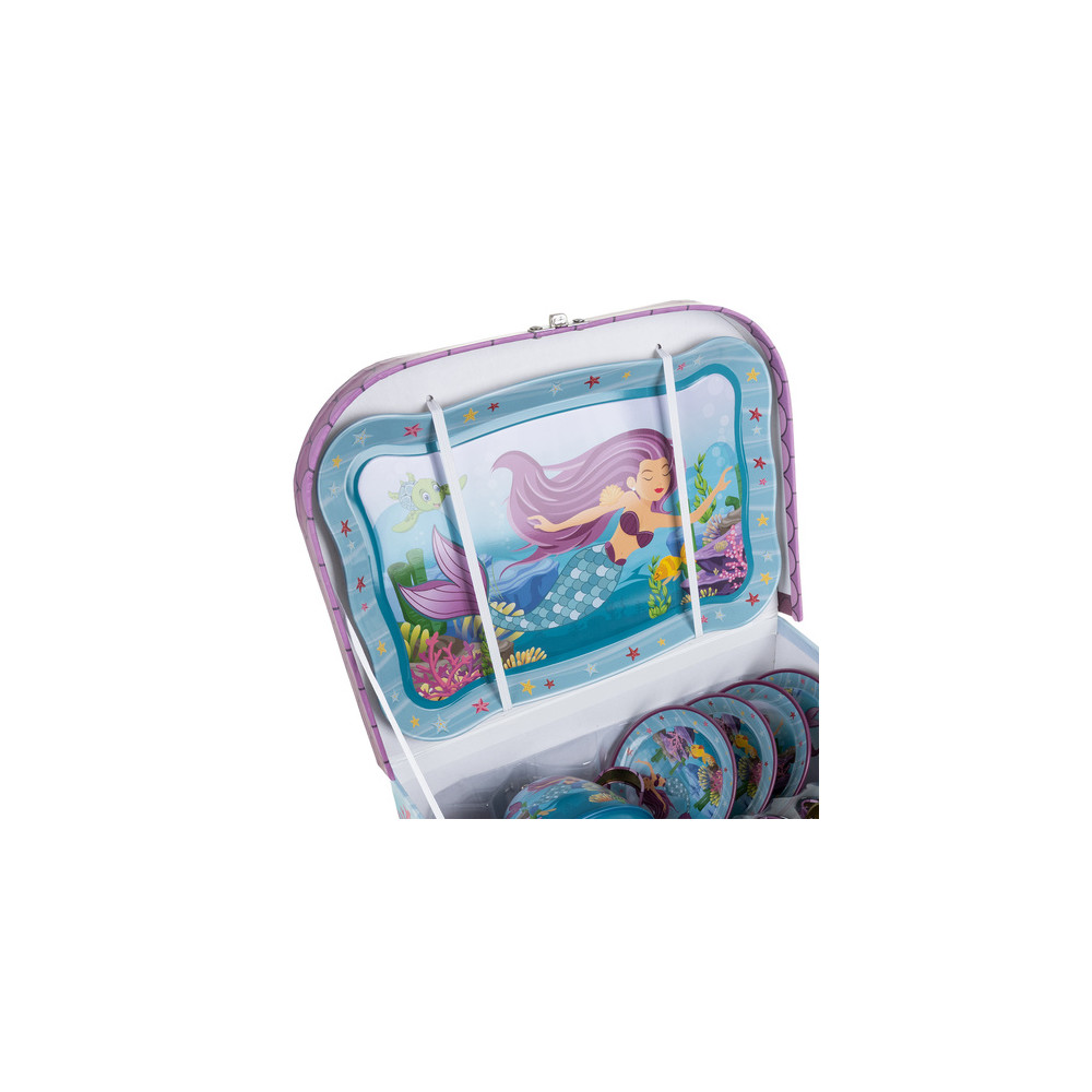 Dětská čajová sada s motivem mořské panny. Jedinečná hračka, která děti přenese do světa kouzelných čajových večírků a kreativního hraní. Praktický kufřík usnadňuje skladování a udržování pořádku.