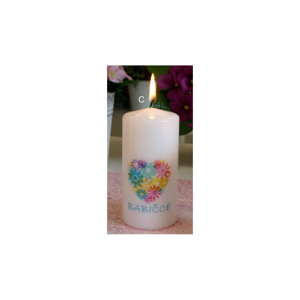 Bílá svíčka s věnováním pro babičku. Milý dárek vhodný k narozeninám nebo jen tak pro radost.