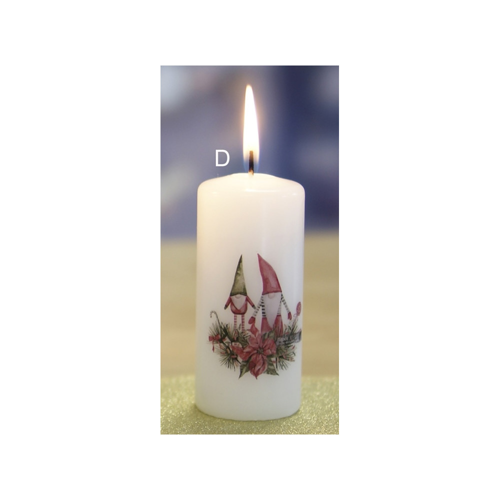 Bílá svíčka s vánočním motivem dodá kouzlo svátečnímu období. Vhodné také na svícny či adventní věnce.
