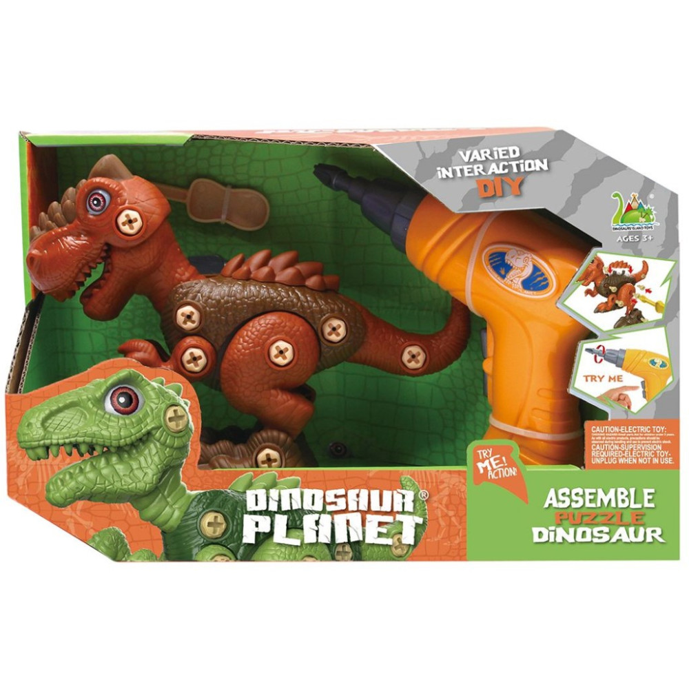 Sestav si svého dinosaura pomocí dílů, šroubků a přiložené akuvrtačky. Sada obsahuje tělo dinosaura spojené plastovými šrouby, akuvrtačku s vyměnitelnými nástavci (plochý a křížový) a ruční křížový šroubováček.