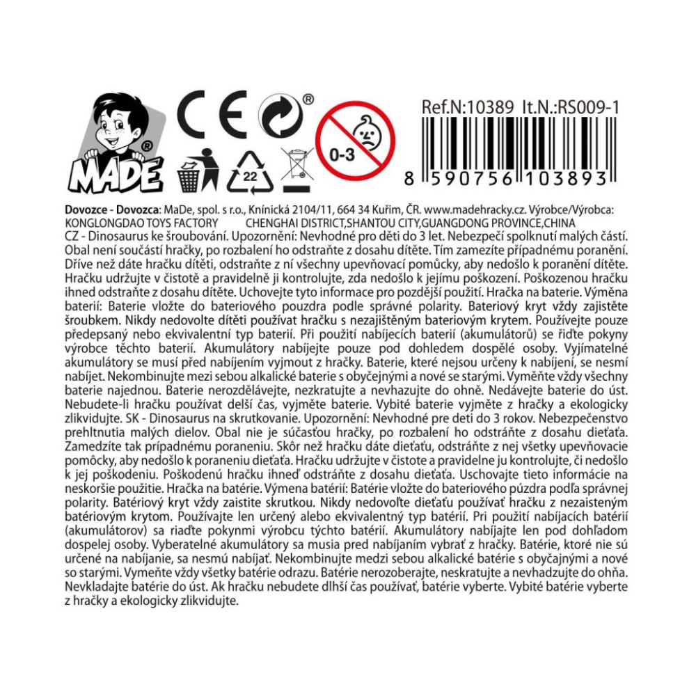 Rozměr: dinosaurus 20 x 15 cm, balení 28 x 10 x 18 cm
