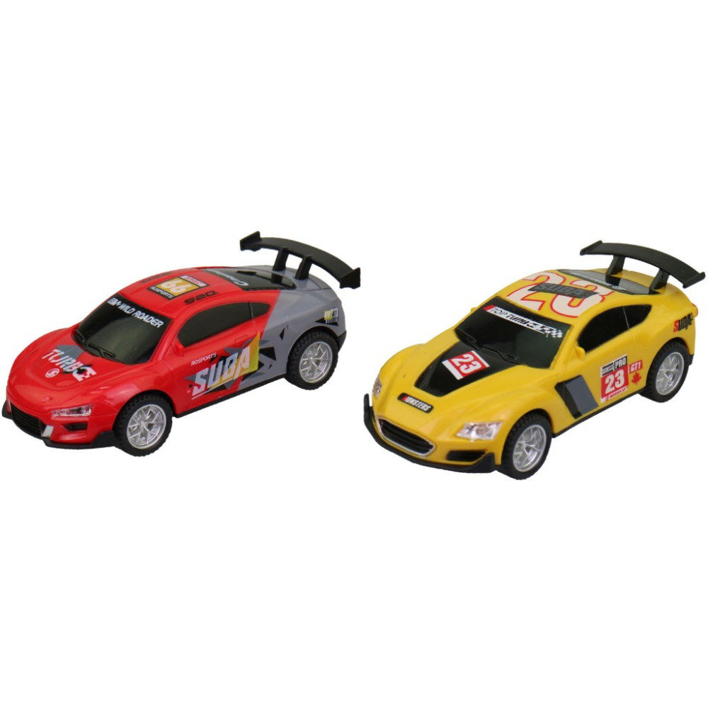 MaDe Náhradní autíčka k autodráze 2 ks červené/žluté 1:43