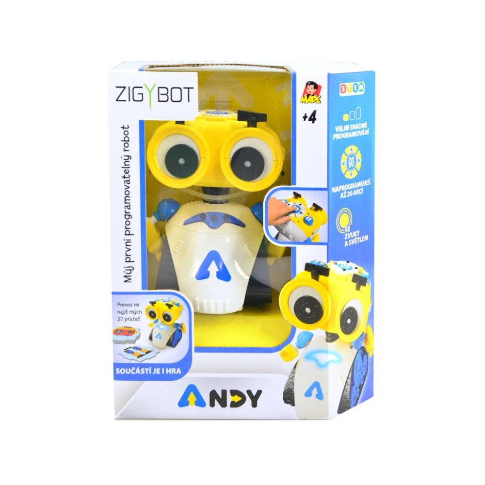 Pomož Andymu najít jeho přátele. Andy je perfektní pro vytvoření základů programování u nejmenších dětí. S jeho kamarády se naučíte rozdíl mezi levou a pravou stranou, sekvence, logický i vesmírný pohled. Obsahuje také herní návod, jak robota programovat.