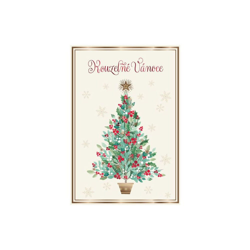 Vánoční přání se zlatou a červenou ražbou zdobí nápis Kouzelné Vánoce. Uvnitř přání najdete milou básničku a krátké univerzální věnování.